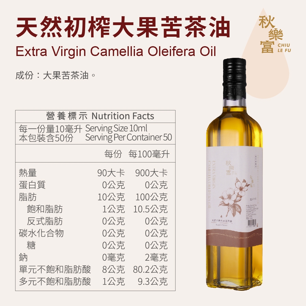 秋樂富 天然初榨大果苦茶油 500ml 坐月子 冬令進補 台灣苦茶油 茶花苦茶油 發煙點高 中式高溫烹煮天然初榨大果苦茶油 2027/07/01OilRS睿森嚴選|秋樂富油品