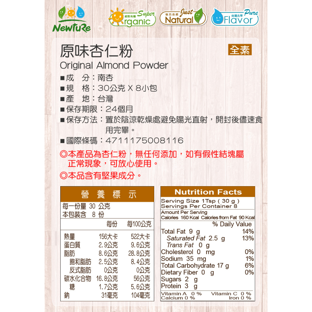 【展康】原味杏仁粉30g×8/盒(隨享包)