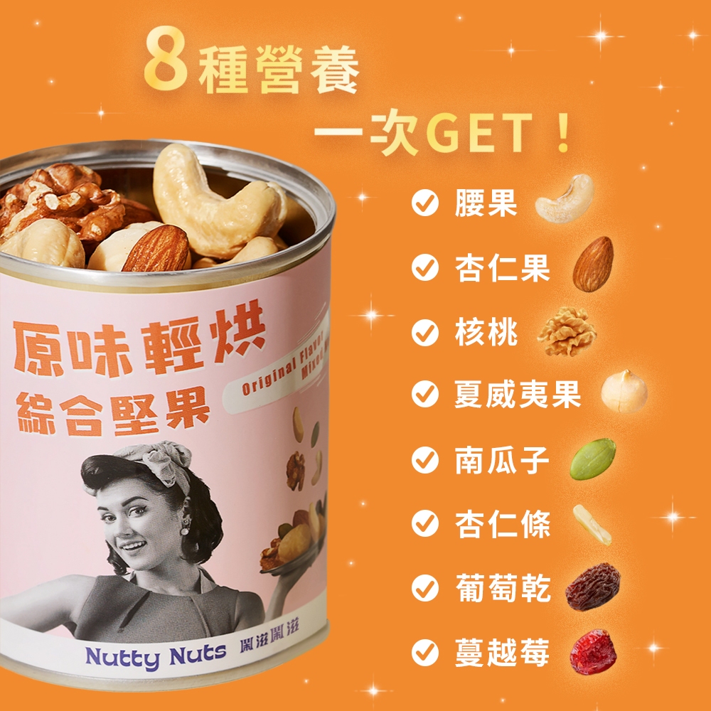 【Nutty Nuts 鬧滋鬧滋】原味輕烘綜合堅果(120g/罐)3 入組 | 長時間低溫烘焙製成【Nutty Nuts 鬧滋鬧滋】原味輕烘綜合堅果(120g/罐)3 入組 | 長時間低溫烘焙製成NutsNutty Nuts 鬧滋鬧滋
