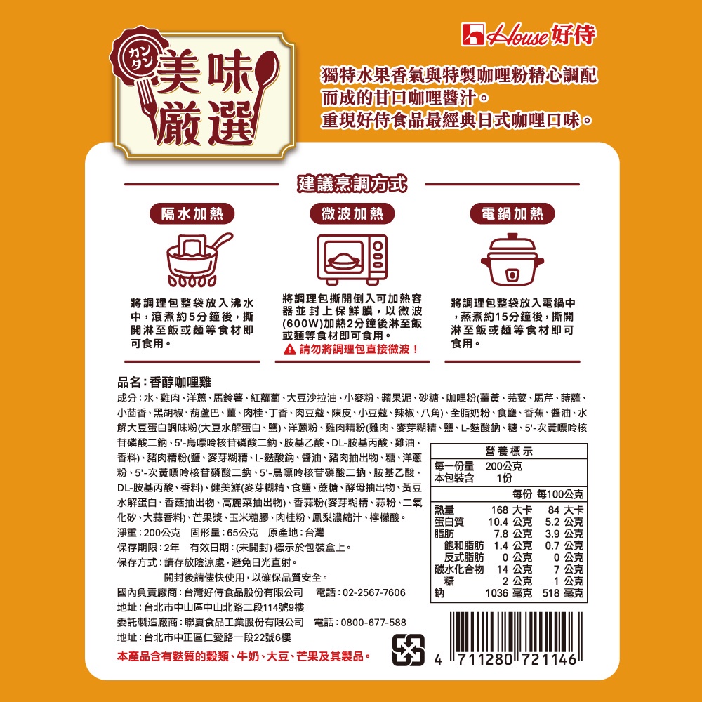 【日本House 好侍】咖哩調理包6合組 200g/盒(香醇咖哩雞、濃厚咖哩牛、濃醇素食咖哩)濃純素食咖哩x6|香醇咖哩雞x6|濃醇咖哩牛x6|咖哩牛x3+食咖哩x3|咖哩雞x2+咖哩牛x2+食咖哩x2|咖哩雞x3+咖哩牛x3|咖哩雞x3+食咖哩x3Cooking Paste & KitRoyal Chef 天廚商城