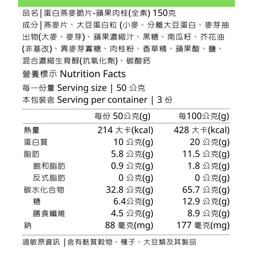 穀卡卡 全新植物蛋白 燕麥脆片150g 摩卡口味/蘋果肉桂 植物蛋白燕麥脆片 網路爆紅 大豆蛋白 低卡 純素穀片 堅果植物蛋白 摩卡 2026/6/3|植物蛋白蘋果肉桂 2026/5/28Cereal, Granola & OatsRS睿森嚴選|秋樂富油品