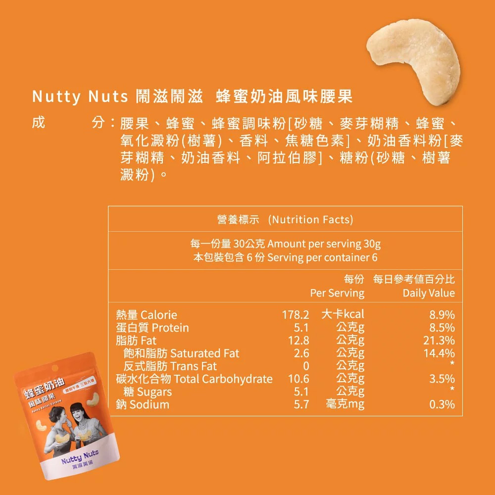 【Nutty Nuts 鬧滋鬧滋】蜂蜜奶油風味腰果(6入/盒) | 經典不敗的幸福滋味 | 下午的療癒涮嘴零食【Nutty Nuts 鬧滋鬧滋】蜂蜜奶油風味腰果(6入/盒) | 經典不敗的幸福滋味 | 下午的療癒涮嘴零食NutsNutty Nuts 鬧滋鬧滋