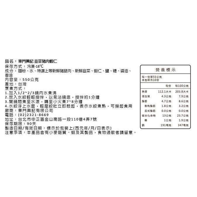 【東門興記】手工水餃_韭菜豬肉蝦仁水餃(550g)【東門興記】手工水餃_韭菜豬肉蝦仁水餃(550g)Cooked FoodPGI名廚美饌官方網路商店