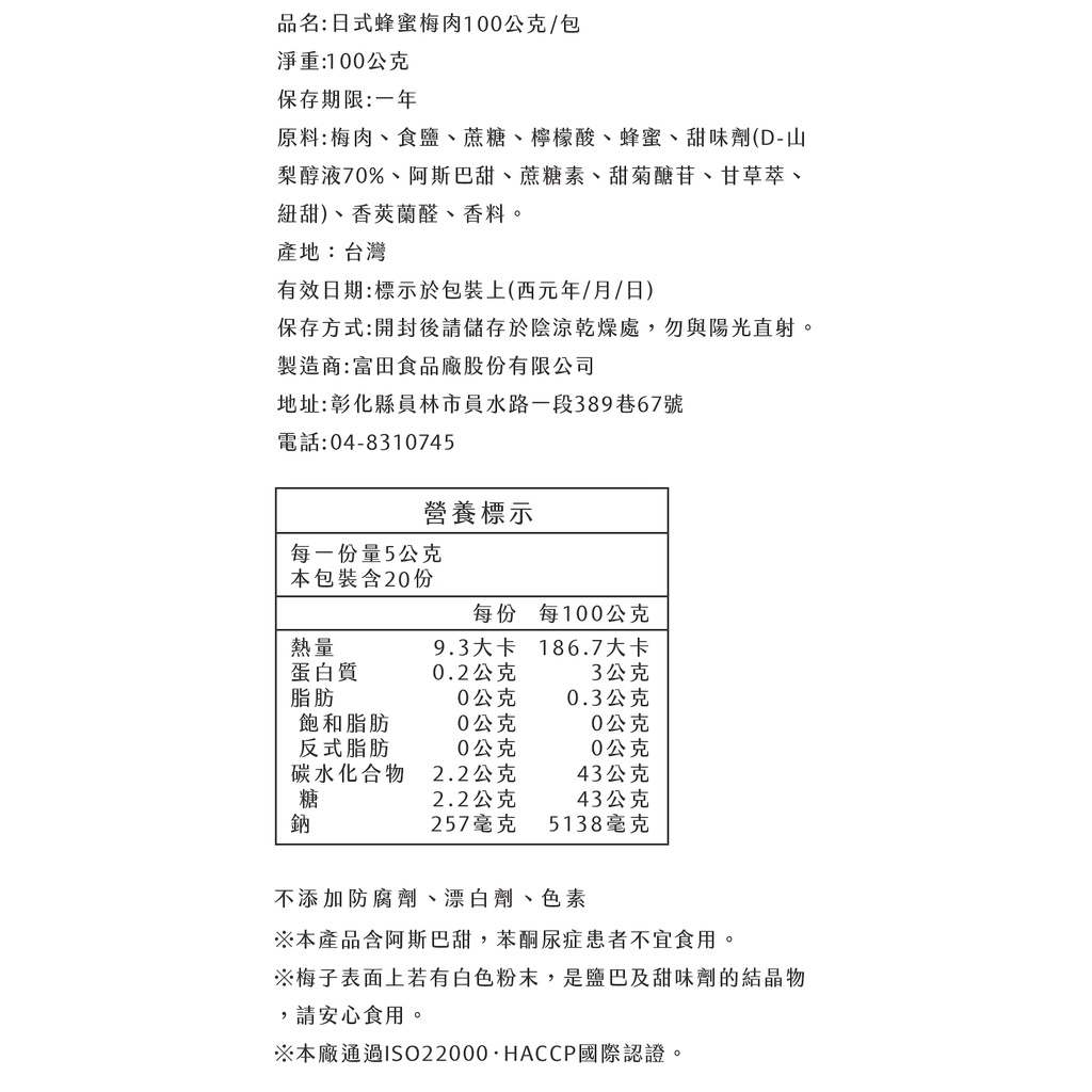 【富田】日式蜂蜜梅肉 100克/包(個包裝)限時特賣選項3|100公克/包(個包裝)|限時特賣選項|限時特賣選項1|限時特賣選項2Dried SnacksPLUM’S有顆梅 專業製梅 SINCE1949