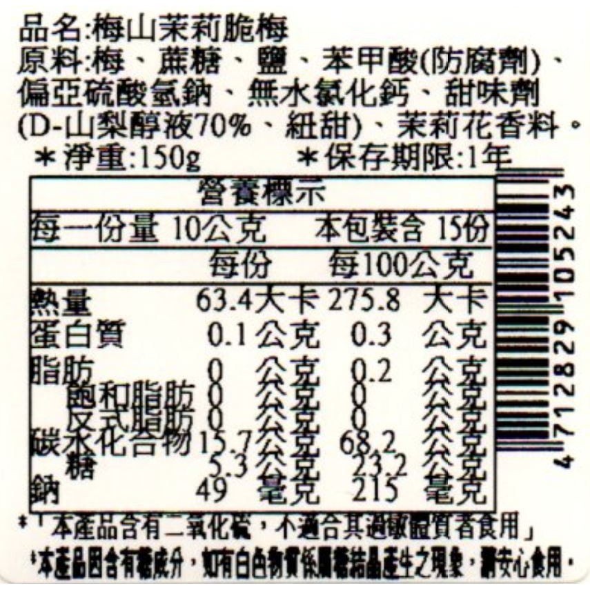 【有顆梅】『梅山茉莉脆梅』經典蜜餞(150公克/包) / 單顆包裝 / 乾淨不沾手 / 分享好方便梅山茉莉脆梅(150公克/包)(單包裝)|限時特賣選項Dried SnacksPLUM’S有顆梅 專業製梅 SINCE1949