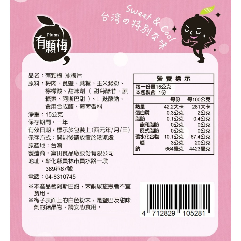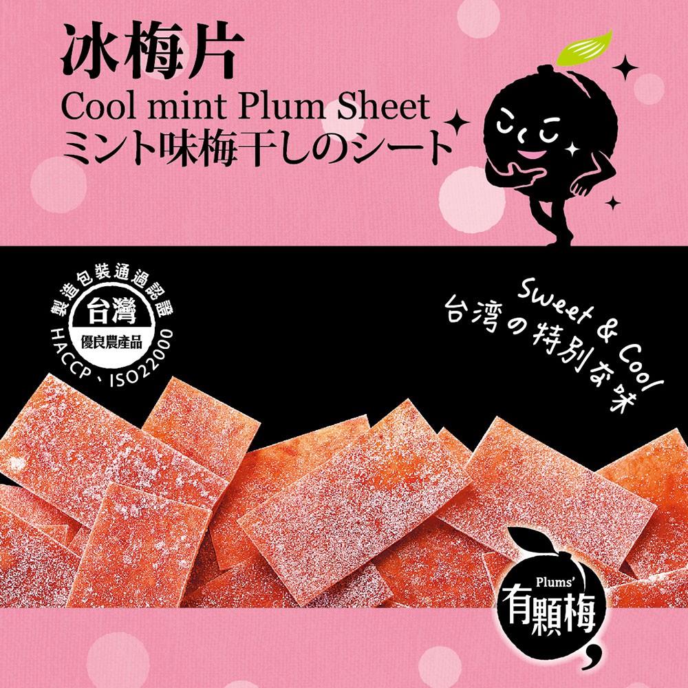 【有顆梅】冰梅片(薄荷口味)清涼口感(15公克)梅子片【有顆梅】冰梅片(薄荷口味)清涼口感(15公克)梅子片Dried SnacksPLUM’S有顆梅 專業製梅 SINCE1949