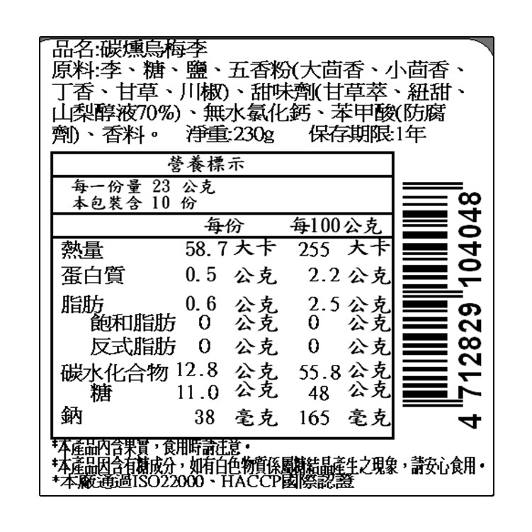 【有顆梅】『碳燻烏梅李』經典蜜餞(230公克/包) / 夾鏈袋 / 超商同款 / 超商熱銷款碳燻烏梅李(230公克/包)|超商限重18包Dried SnacksPLUM’S有顆梅 專業製梅 SINCE1949