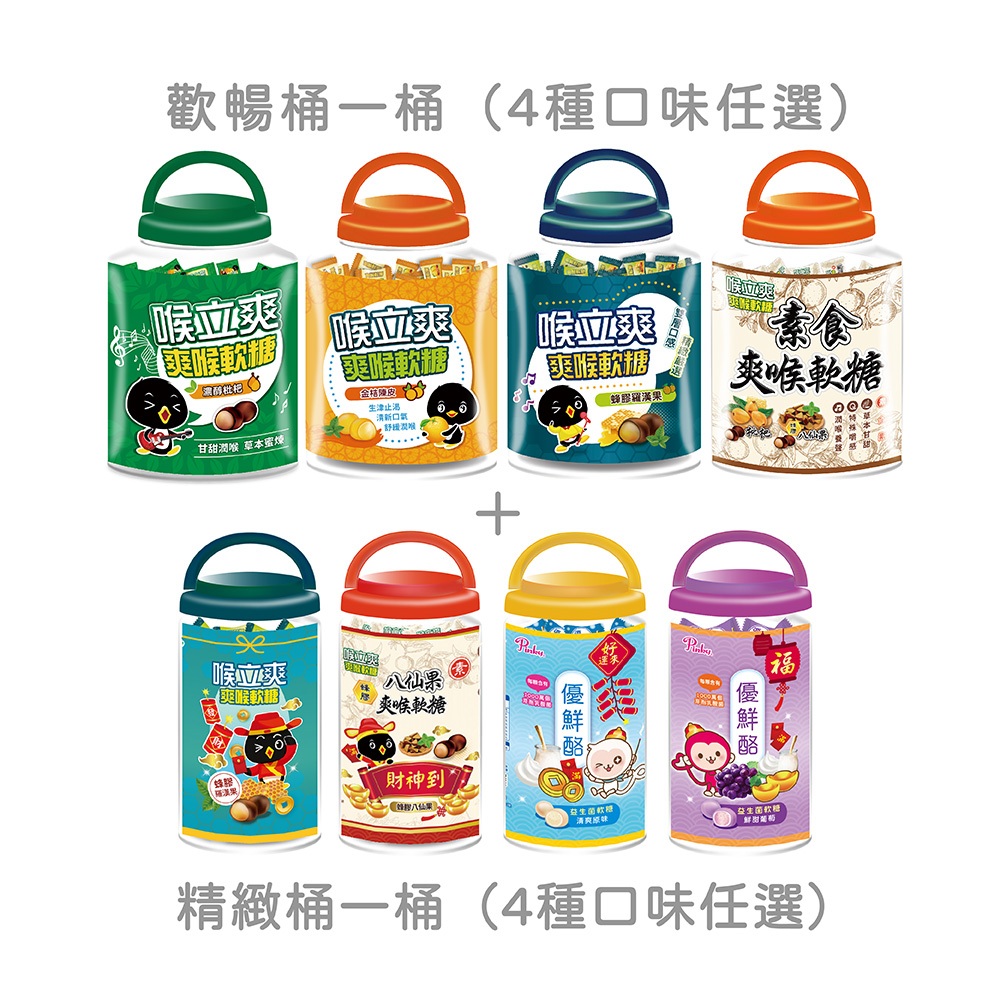 【喉立爽】爽喉軟糖_歡暢桶1桶 ( 4種口味任選 ) +【喉立爽&Pinky優鮮酪】精緻桶1桶 ( 4種口味任選 )枇杷400g(桶),喉立爽_蜂膠羅漢果110g|枇杷400g(桶),喉立爽_素食蜂膠八仙果110g|枇杷400g(桶),Pinky優鮮酪_原味110g|枇杷400g(桶),Pinky優鮮酪_葡萄110g|蜂膠羅漢果400g(桶),喉立爽_蜂膠羅漢果110g|蜂膠羅漢果400g(桶),喉立爽_素食蜂膠八仙果110g|蜂膠羅漢果400g(桶),Pinky優鮮酪_原味110g|蜂膠羅漢果400g(桶),Pinky優鮮酪_葡萄110g|金桔陳皮400g(桶),喉立爽_蜂膠羅漢果110g|金桔陳皮400g(桶),喉立爽_素食蜂膠八仙果110g|金桔陳皮400g(桶),Pinky優鮮酪_原味110g|金桔陳皮400g(桶),Pinky優鮮酪_葡萄110g|素食枇杷+素食蜂膠八仙果350g(桶),喉立爽_蜂膠羅漢果110g|素食枇杷+素食蜂膠八仙果350g(桶),喉立爽_素食蜂膠八仙果110g|素食枇杷+素食蜂膠八仙果350g(桶),Pinky優鮮酪_原味110g|素食枇杷+素食蜂膠八仙果350g(桶),Pinky優鮮酪_葡萄110gSweets & CandyPinky官方旗艦館/五洲生醫