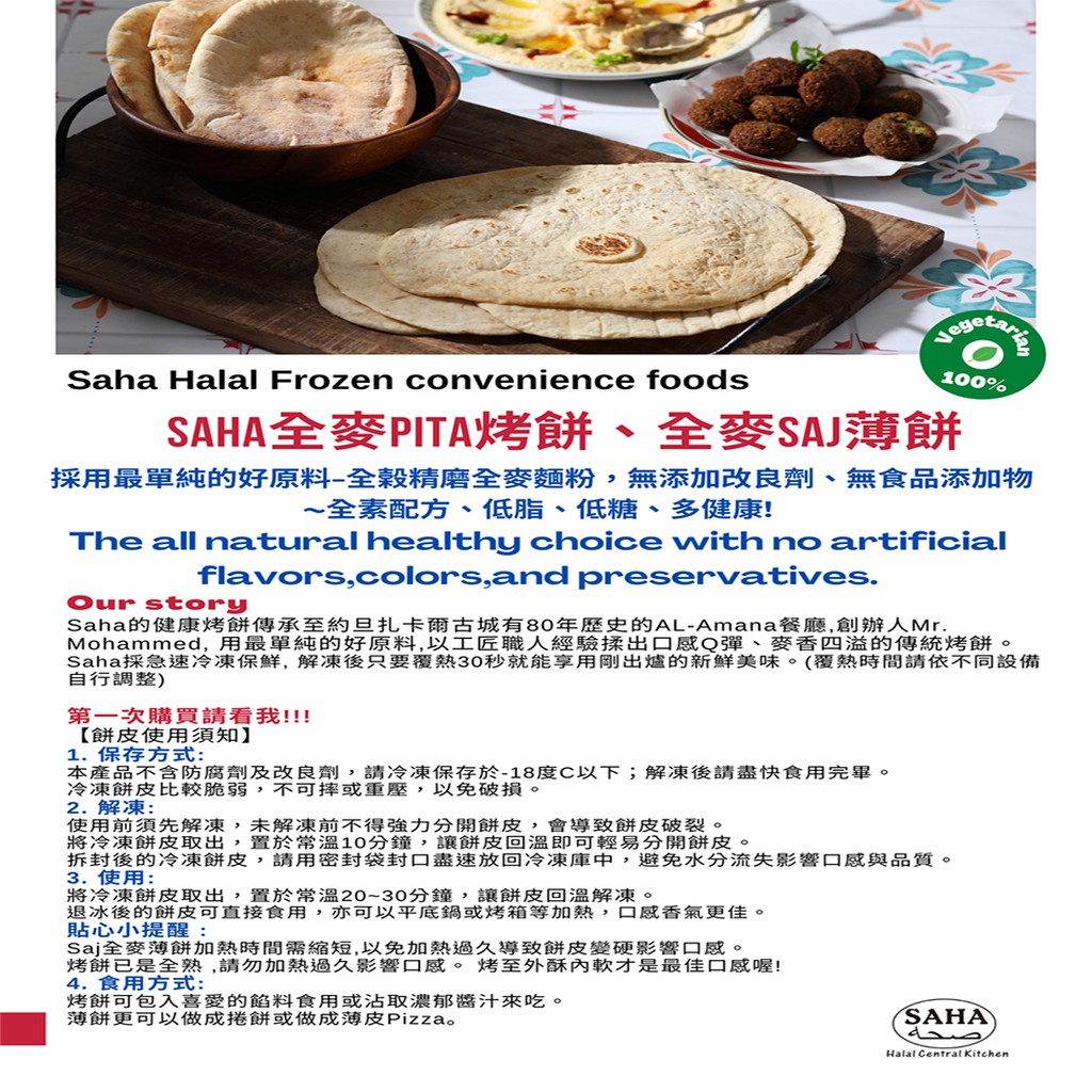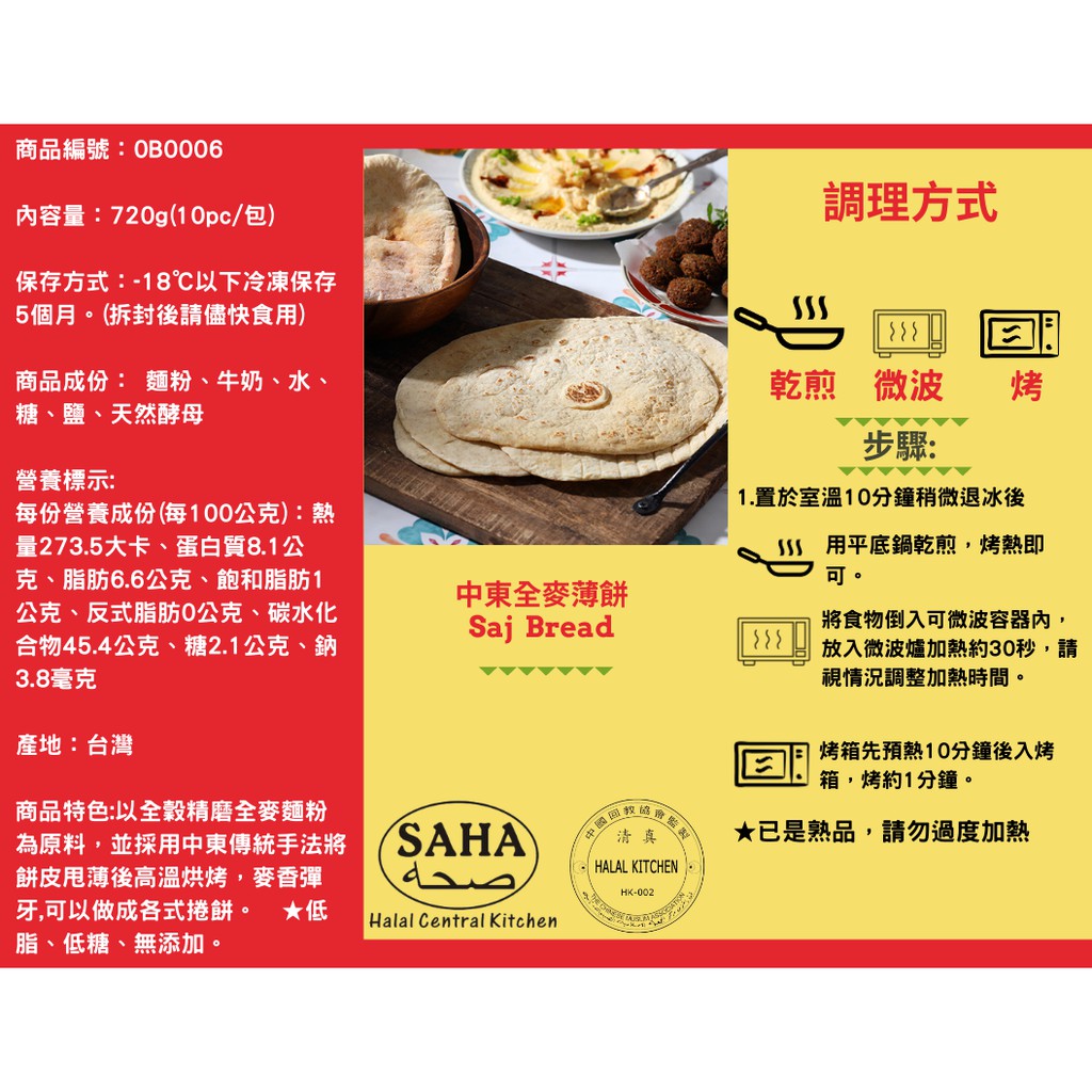 SAHA全麥薄餅 Saj Bread《Halal清真認證》冷凍清真食品/冷凍加熱即食調理包/無添加/團購美食SAHA全麥薄餅 Saj Bread《Halal清真認證》冷凍清真食品/冷凍加熱即食調理包/無添加/團購美食Cooked FoodSAHA料理中央廚房