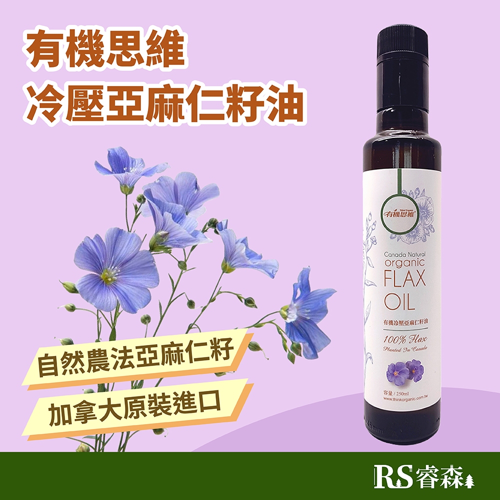 自然思維 有機思維 冷壓亞麻仁籽油 250ml Omega-3 加拿大亞麻仁籽油 有機亞麻仁油 無麩質 純素 非基因改造冷壓亞麻仁籽油 2026/08/12OilRS睿森嚴選|秋樂富油品