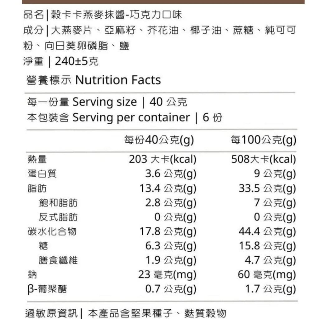 穀卡卡 純素燕麥抹醬 抹茶口味 肉桂口味 巧克力口味 堅果抹醬 穀片 燕麥 零嘴 亞麻籽燕麥抹醬 早餐抹醬燕麥抹醬 巧克力(純素)2026/1/4|燕麥抹醬 抹茶(純素)2026/1/21|燕麥抹醬 肉桂(純素)2025/12/2Jam & SpreadRS睿森嚴選|秋樂富油品