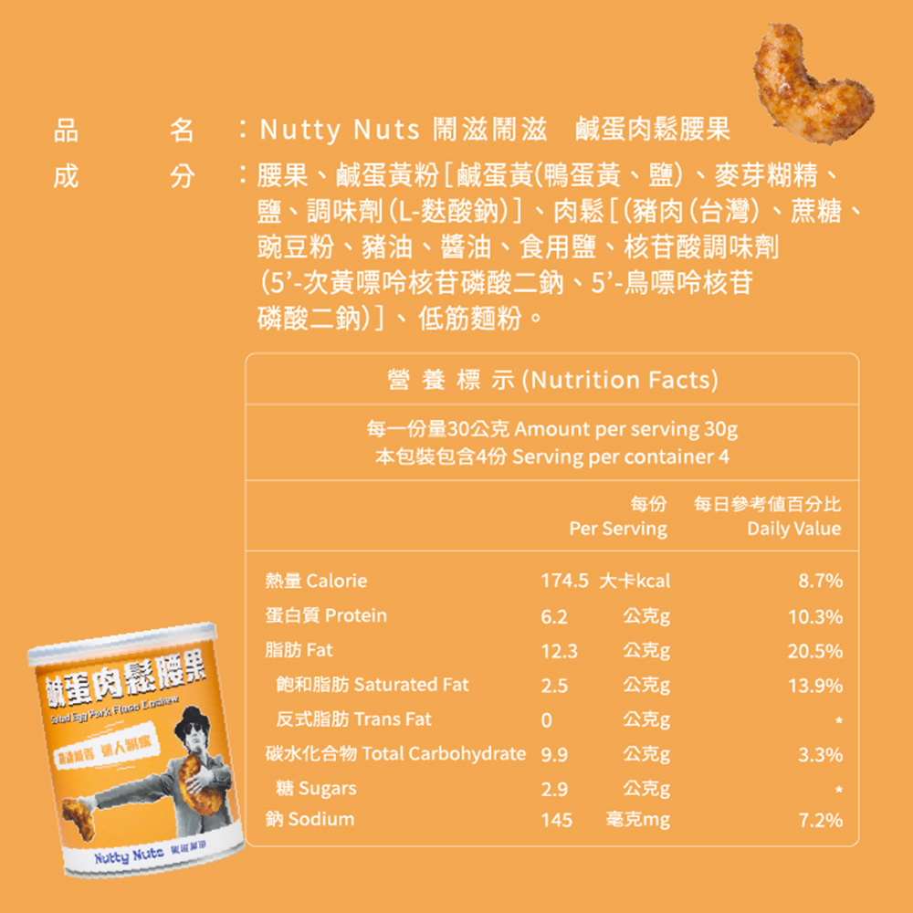【Nutty Nuts 鬧滋鬧滋】明星商品組 | 3 款人氣熱銷商品 | 鹹蛋肉鬆腰果120g/罐、鹹酥雞杏仁、荔枝腰果【Nutty Nuts 鬧滋鬧滋】明星商品組 | 3 款人氣熱銷商品 | 鹹蛋肉鬆腰果120g/罐、鹹酥雞杏仁、荔枝腰果NutsNutty Nuts 鬧滋鬧滋