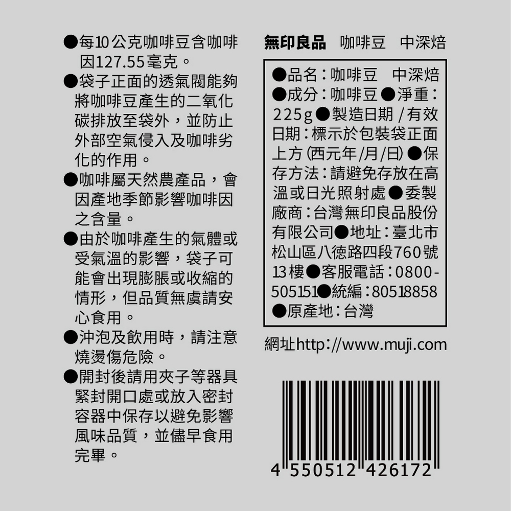 【MUJI 無印良品】咖啡豆 中深焙【MUJI 無印良品】咖啡豆 中深焙CoffeeMUJI無印良品 官方旗艦店