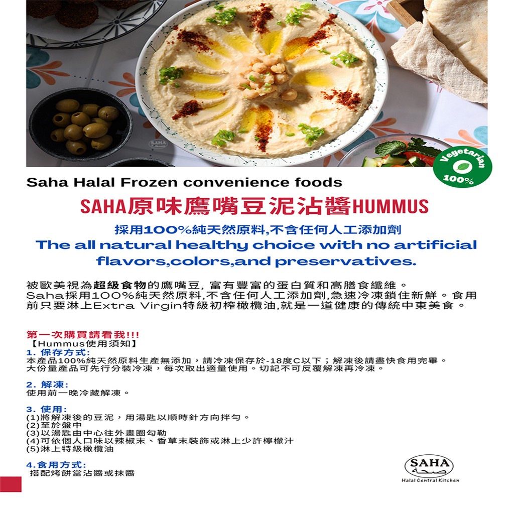 SAHA鷹嘴豆泥 Hummus(全素、原味)《Halal清真認證》冷凍清真食品/冷凍加熱即食調理包/無添加/團購美食SAHA鷹嘴豆泥 Hummus(全素、原味)《Halal清真認證》冷凍清真食品/冷凍加熱即食調理包/無添加/團購美食Cooked FoodSAHA料理中央廚房