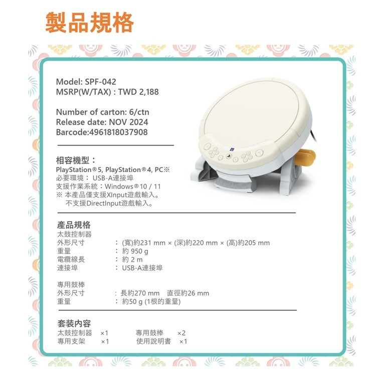 【御玩家】現貨 PS4 PS5 PC適用 太鼓之達人 HORI 專用遊戲控制器 SPF-042 原廠保固 咚咚雷音季單買專用控制器(適用PS4/PS5/PC|單買遊戲片|遊戲片+專用遊戲控制器Royal Player 御玩家 官方商城