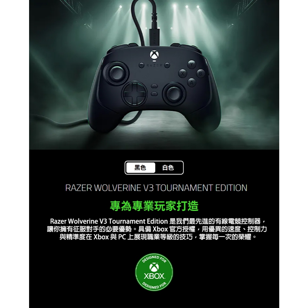 Razer 雷蛇 Wolverine V3 Tournament 金鋼狼 遊戲搖桿 有線搖桿 電競搖桿 電競手把黑色|白色Razer雷蛇|電競週邊館