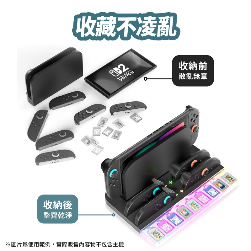 Switch2 主機收納架 多合一收納 RGB燈效 NS2 多合一手把充電底座 卡夾收納架 主機底座 SX133Switch 2 主機收納底座Q哥 電玩旗艦商城|Switch2 PS5 遊戲片 Xbox ptcg寶可夢