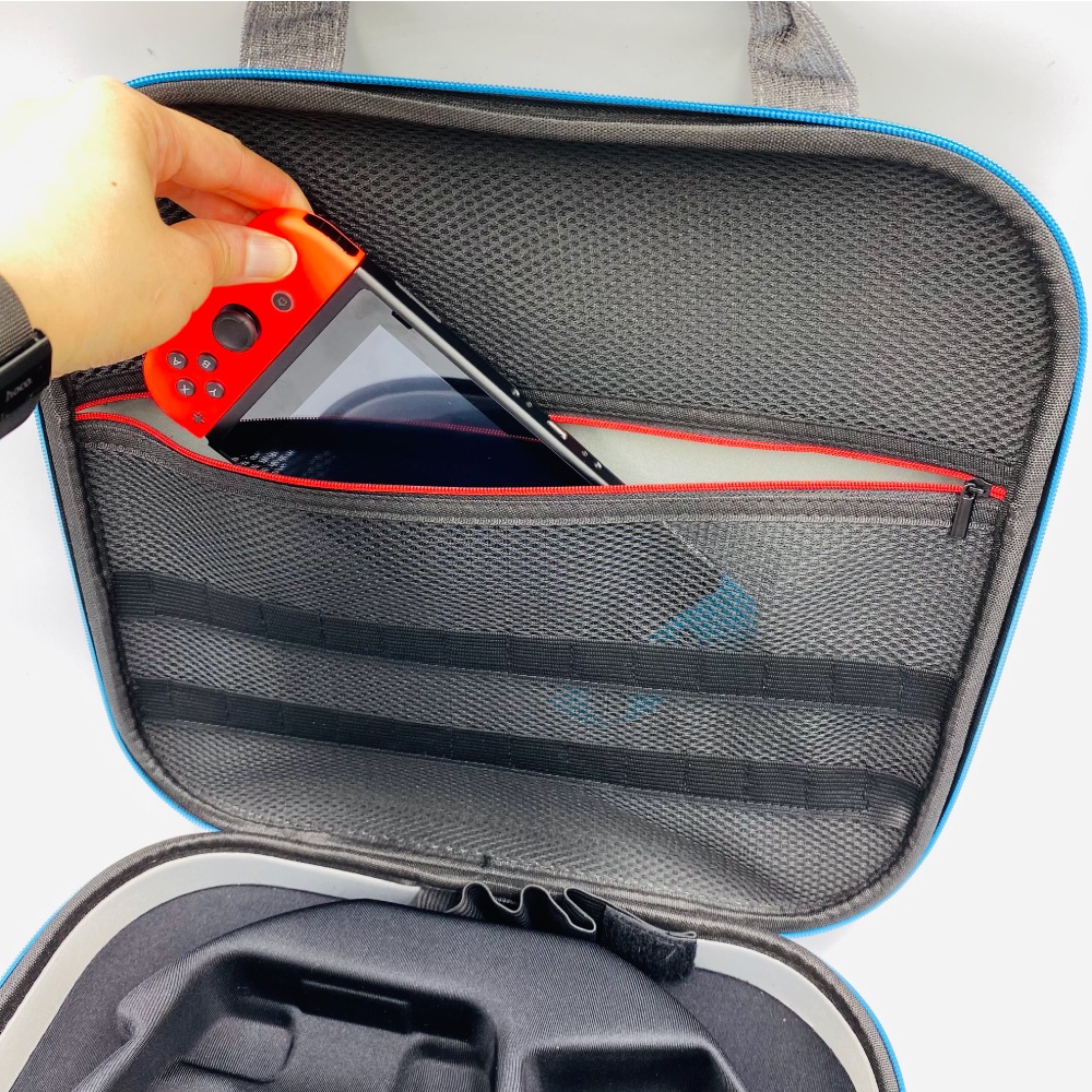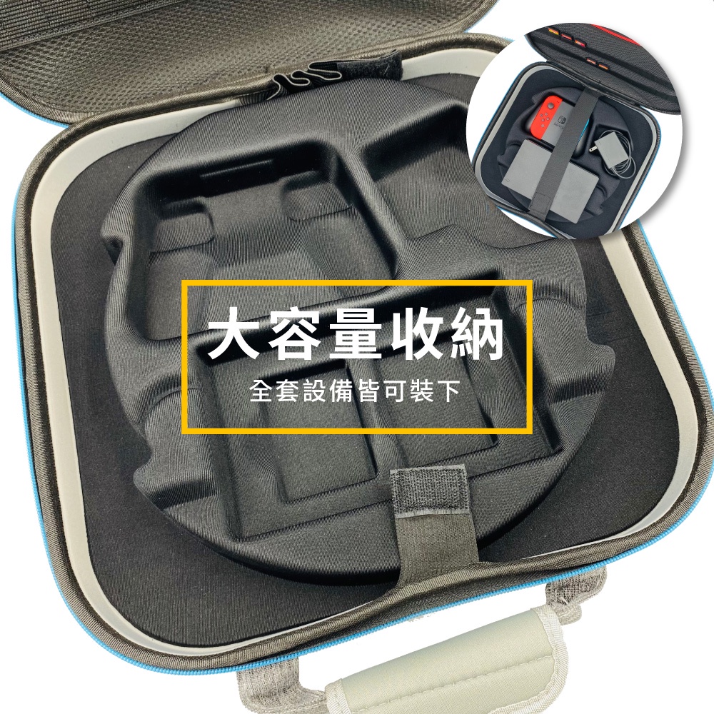 Switch健身環收納便攜包 收納包 保護殼 全配件收納 副廠灰色|黑色無圖案|升級版全配硬箱-灰Okade