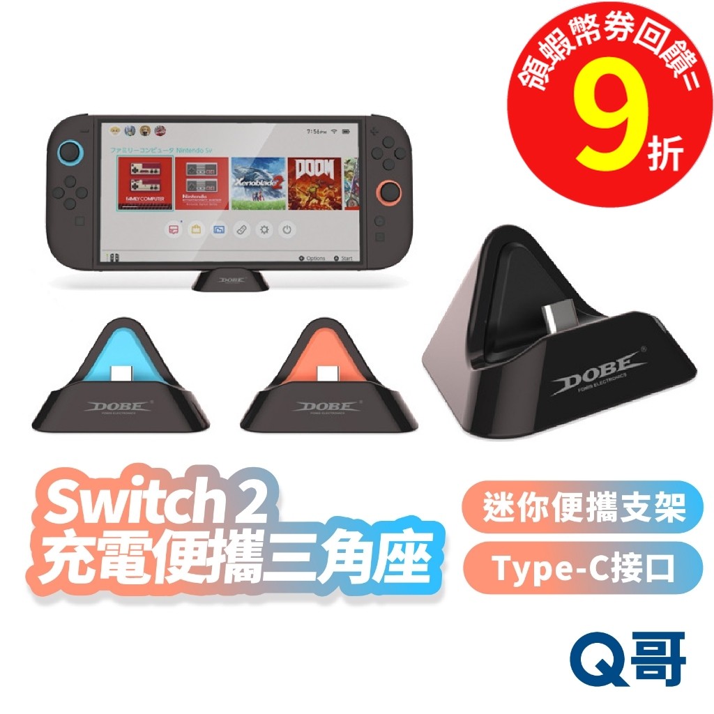 Switch2 主機便攜三角座 TypeC 充電便攜底座 NS2 充電底座 立架 支架 充電架 座充 三角座 SX114黑|橙黑|藍黑Q哥 電玩旗艦商城|Switch2 PS5 遊戲片 Xbox ptcg寶可夢