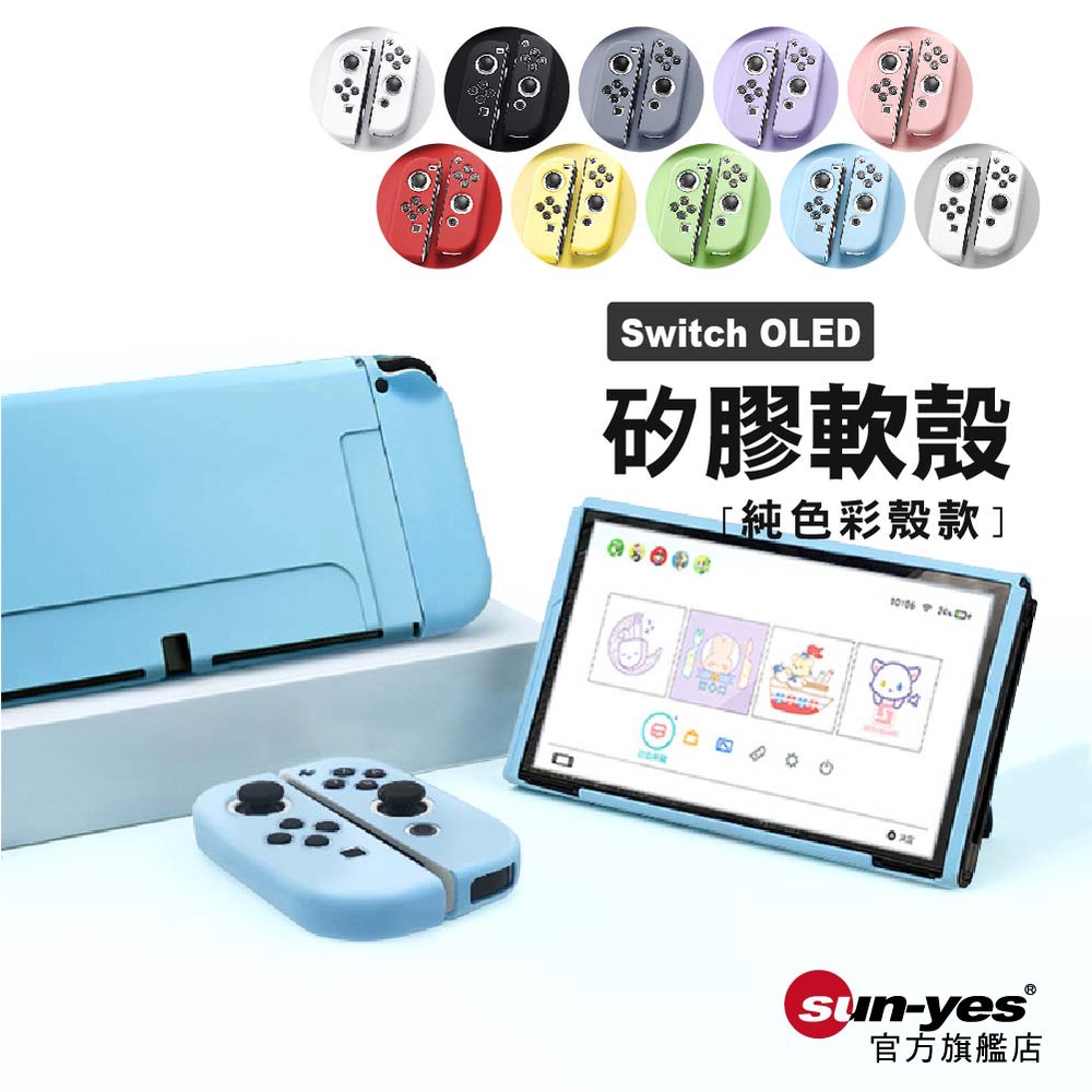 Switch OLED 矽膠保護套|純色軟殼款|SY-RTK02|TPU軟殼/矽膠軟殼/Switch保護套/配件粉色|紅色|藍色|透明|白色|黑色|灰藍|紫色|黃色|綠色SUNYES 官方旗艦店