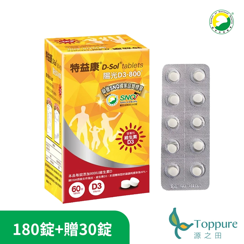 ⭐共180錠加送30錠⭐【源之田】 特益康D3-800(60錠+贈10錠)x3盒組 | 效期:2027/07/22專案組合(每盒60錠+送10錠)x3盒Well BeingSNQ健康優購網