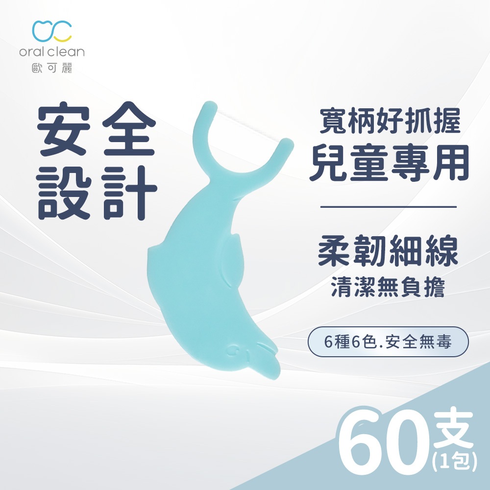 【歐可麗】兒童牙線棒(60支/包)|安全設計無尖銳稜角 兒童好抓握 讓孩子愛上牙齒清潔兒童牙線1包Oral CareOral Clean 歐可麗