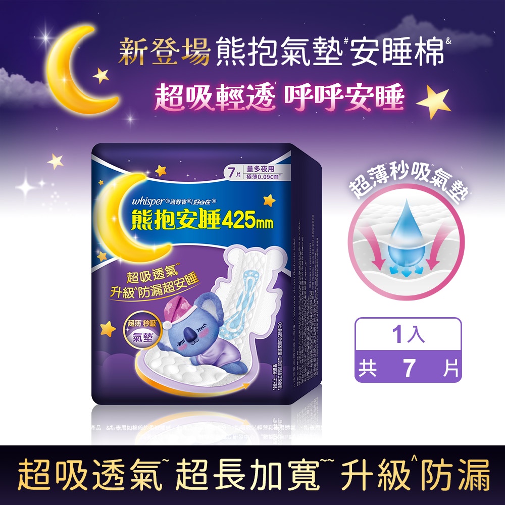 好自在 熊抱安睡棉/衛生棉/夜用衛生棉 31.7cm、36cm、42.5cm (1包、2包)量多夜用 42.5cm 7片/包|量多日夜用 31.7cm 12片x2包|量多夜用 36cm 10片x2包|量多夜用 42.5cm 7片x2包|量多日夜用 31.7cm 12片/包|量多夜用 36cm 10片/包Feminine CareP&G寶僑旗艦店-幫寶適/一級幫/超薄乾爽/液體衛生棉/Ariel/官方旗艦店