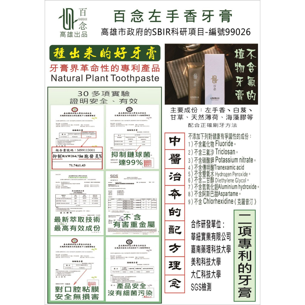 【左手香爺爺】台灣百念左手香牙膏 40g 100g 天然草本牙膏 不含氟 SGS安全檢驗 口腔清新不殘留百念牙膏 40g _ 20270721|百念牙膏 100g_ 20271022|左手香牙膏 40g + 100g 各一條Oral CareR I C H R I C H|Veggie Care|ANKOMN