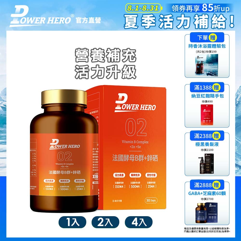 【PowerHero】法國酵母B群+鋅硒膠囊 1/2/4入組 (60顆/盒)《男性營養素、鋅硒升級》1入|2入|4入Well BeingPowerHero 官方旗艦館
