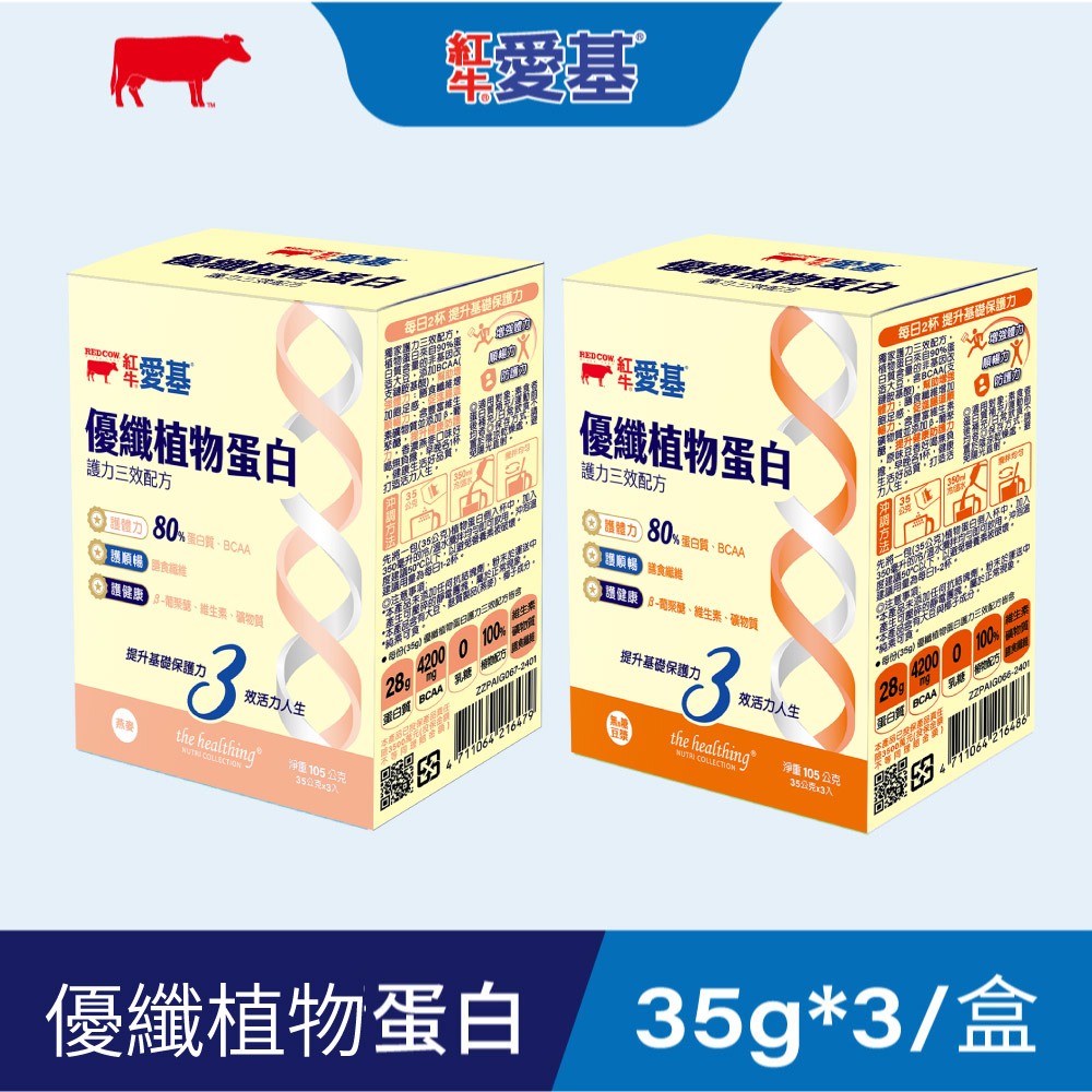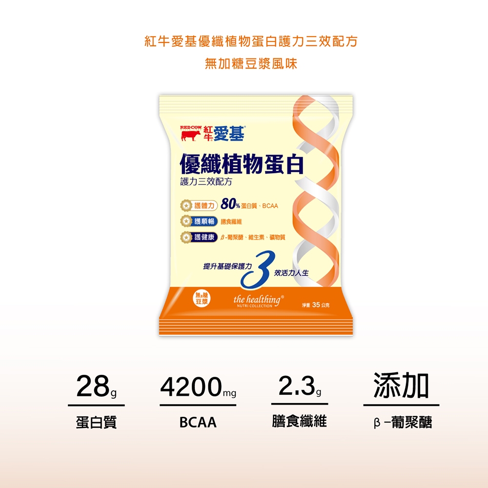 【紅牛官方直營】愛基優纖植物蛋白 護力三效配方35g*3入隨手盒燕麥|無糖豆漿Well BeingRED COW 紅牛奶粉官方網站