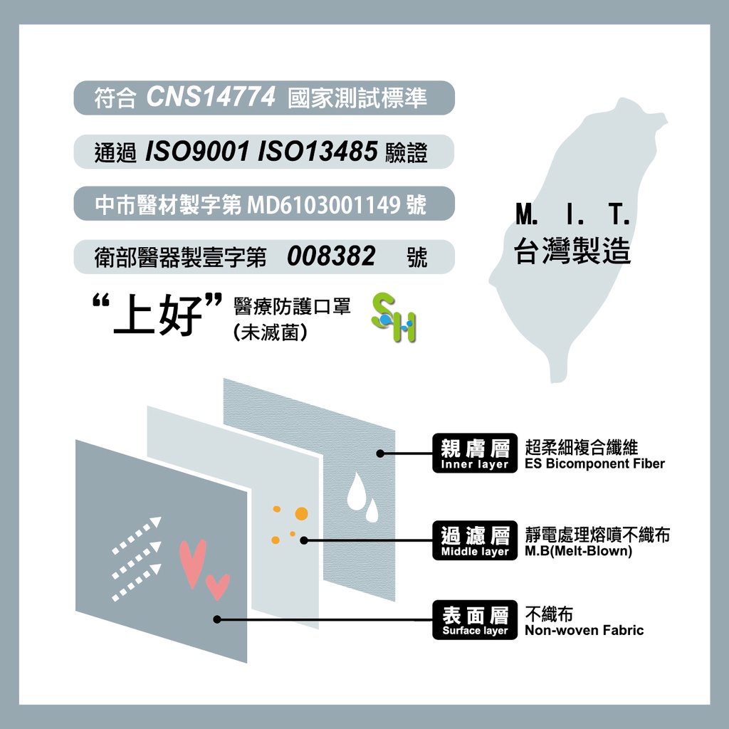【上好生醫】成人|青燕灰|50入裝 醫療防護口罩【上好生醫】成人|青燕灰|50入裝 醫療防護口罩Medical Gloves & MasksSH 上好生醫