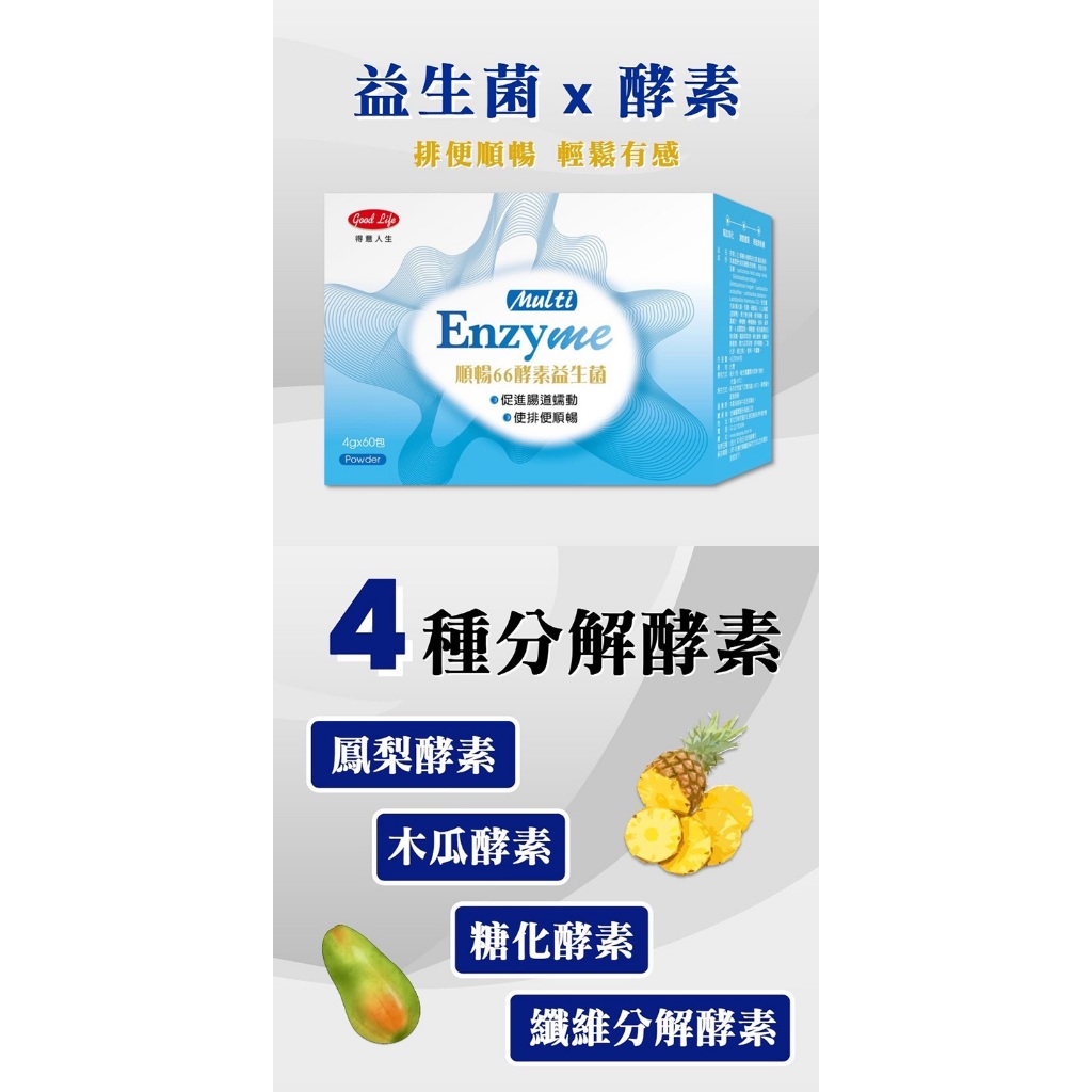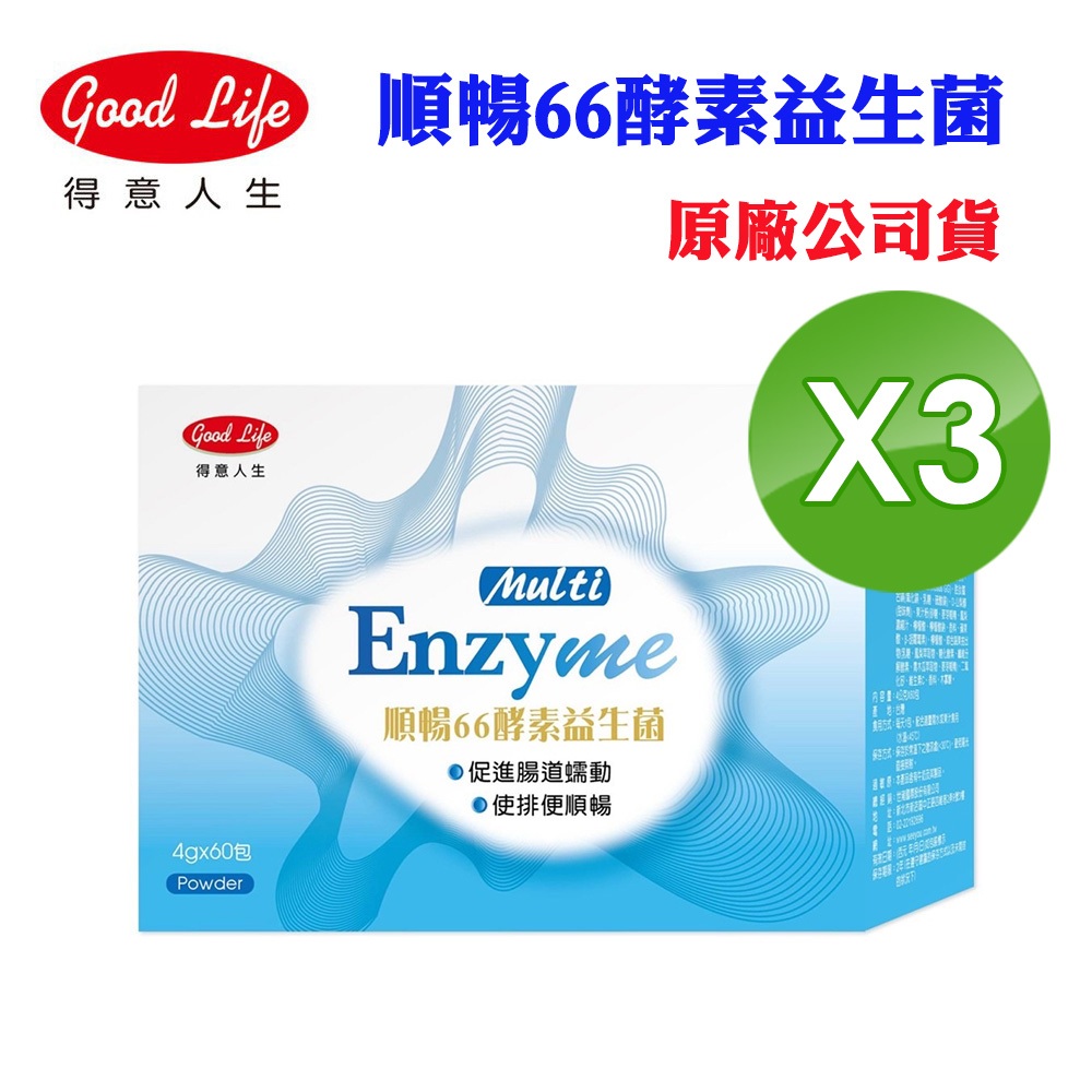 【得意人生】順暢66酵素益生菌(4gx60包x3盒)