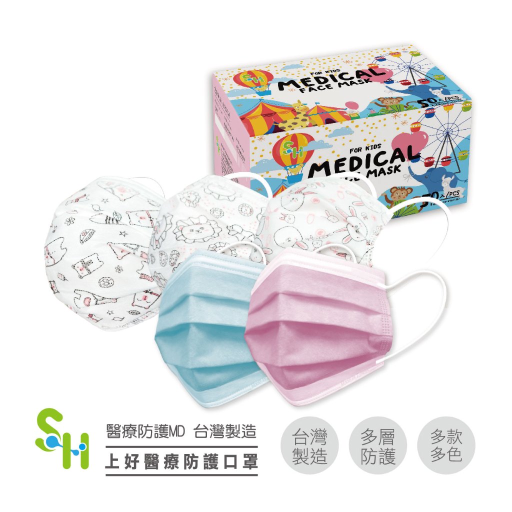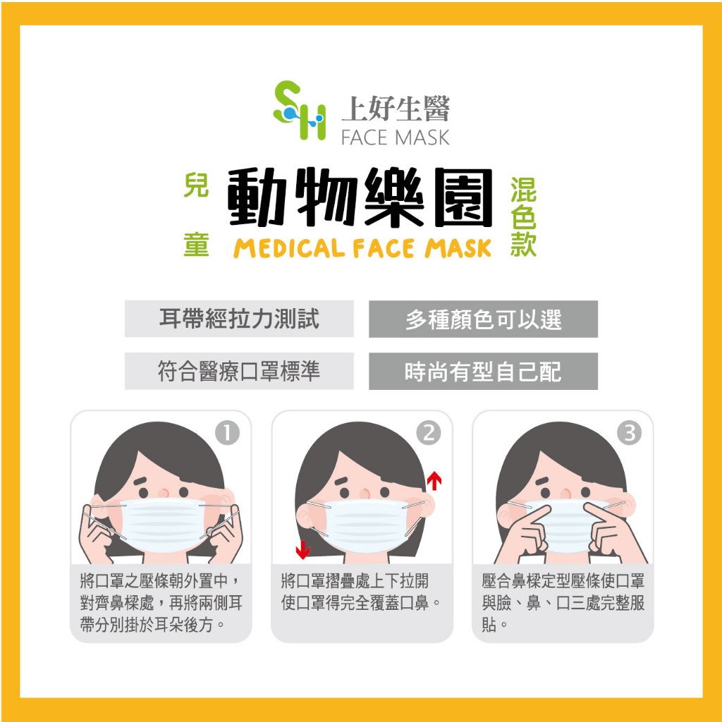 【上好生醫】兒童|動物樂園|50入裝 醫療防護口罩兒童款,W14.5*H9.5(cm)Medical Gloves & MasksSH 上好生醫