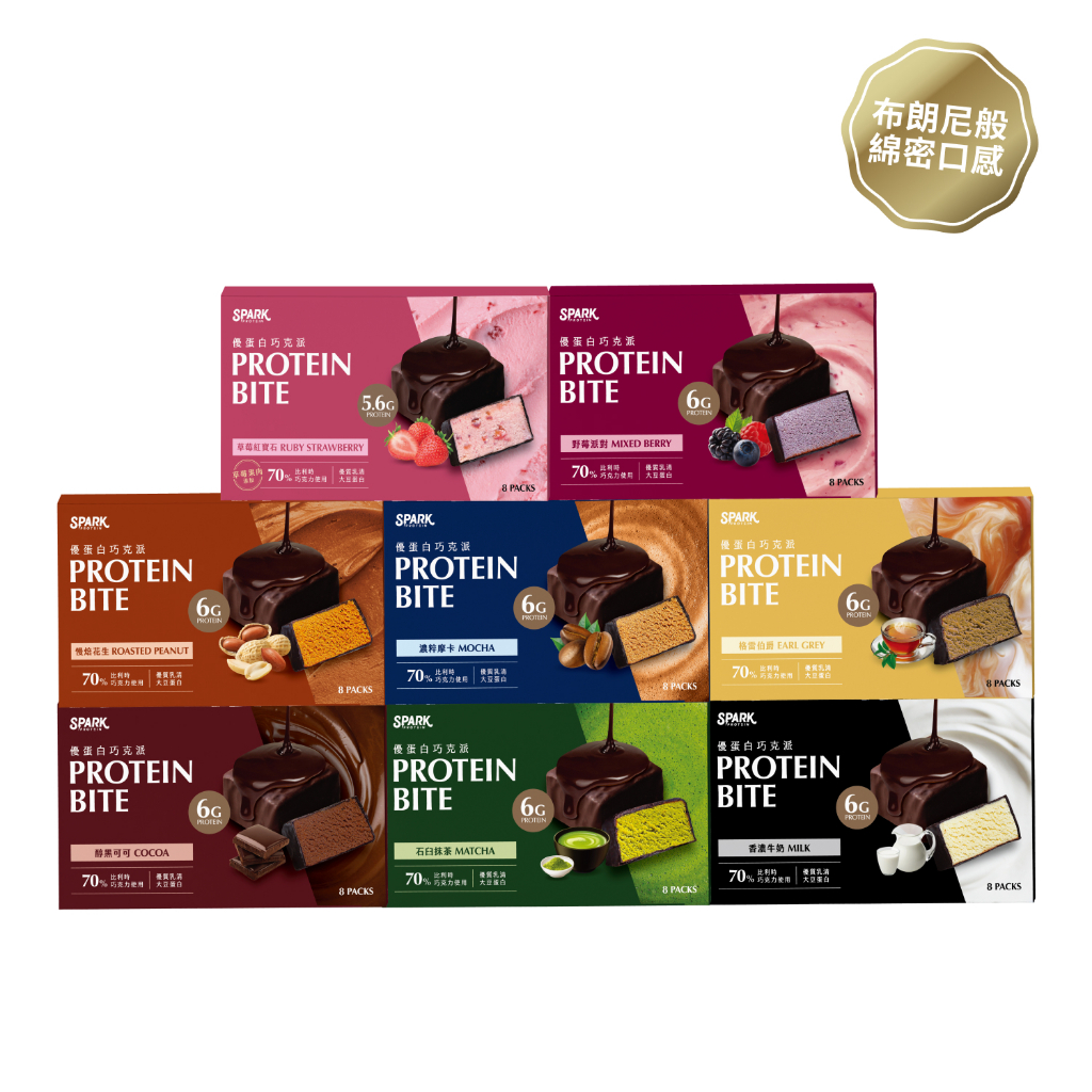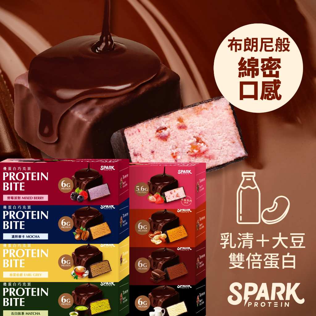 Spark Bite 優蛋白巧克派 8入盒裝 – 多口味選擇|大豆蛋白 巧克力 高蛋白零食 蛋白巧克力 高蛋白醇黑可可(8入盒裝)|石臼抹茶(8入盒裝)|濃粹摩卡(8入盒裝)|格雷伯爵(8入盒裝)FitnessSpark Protein