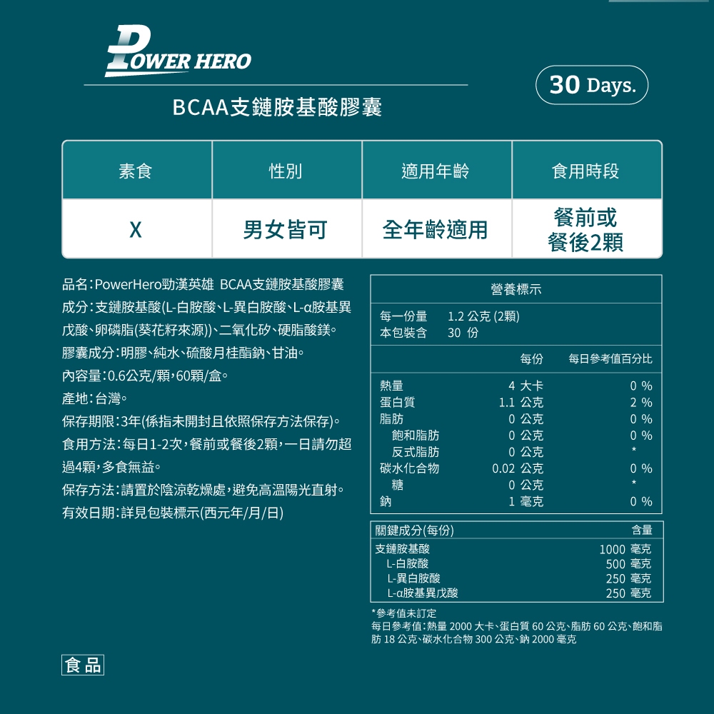 【PowerHero】BCAA支鏈胺基酸 1入組(60顆/盒) 《任選2入享折扣》1入Well BeingPowerHero 官方旗艦館