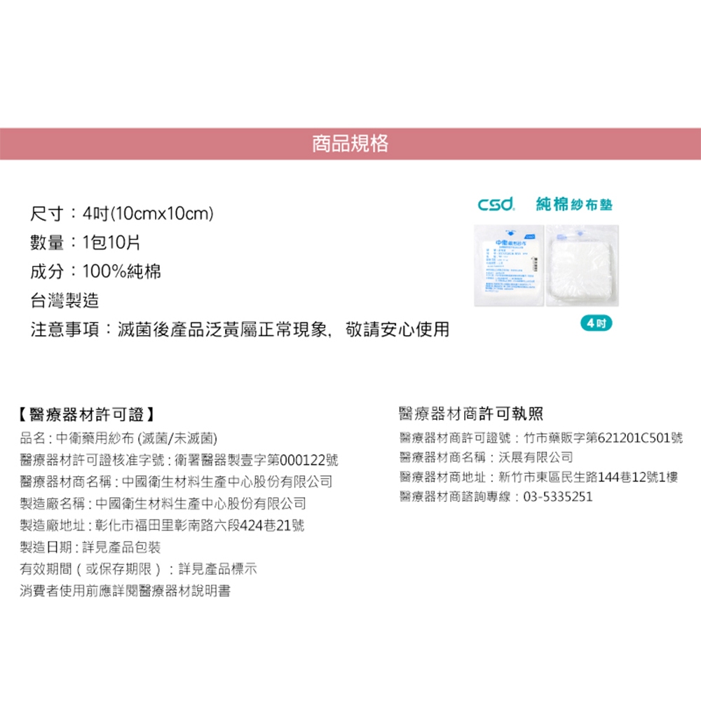 【台灣製】中衛CSD 純棉 紗布墊 藥用紗布 紗布墊 4吋 1包(10片/包)【台灣製】中衛CSD 純棉 紗布墊 藥用紗布 紗布墊 4吋 1包(10片/包)First Aid Suppliesplus健康醫療專營店