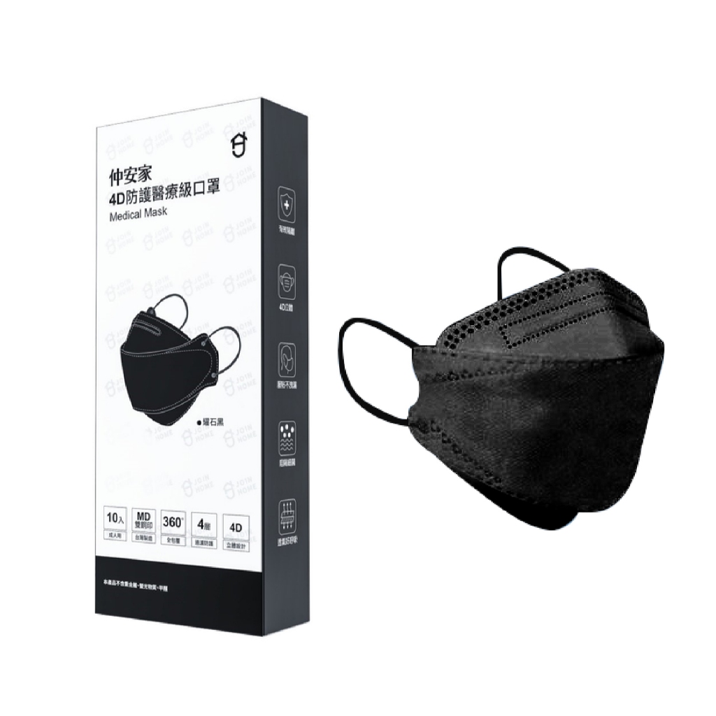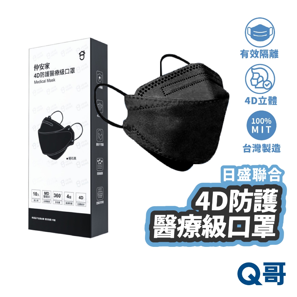 仲安家 4D 防護醫療級 醫用口罩 成人口罩 10入 立體口罩 醫療口罩 透氣 成人 日盛 台灣製造 DRT016耀石黑Medical Gloves & MasksQ哥 旗艦商城|最專業的保護貼手機配件