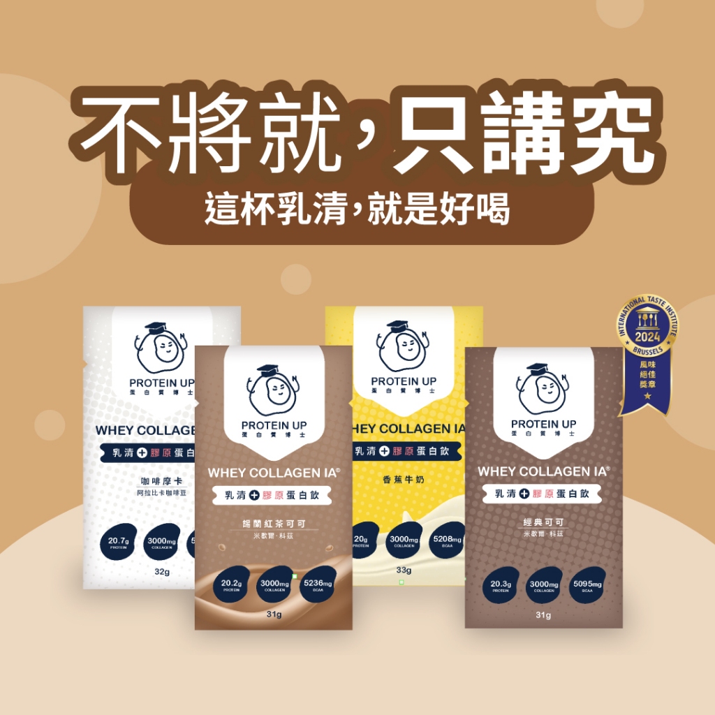 蛋白質博士乳清膠原蛋白飲IA隨手包_牛津博士雙主配方_肌力有感補充_經典可可x1香蕉牛奶x1+錫蘭紅茶可可x1+咖啡摩卡蛋白質博士乳清膠原蛋白飲IA隨手包_牛津博士雙主配方_肌力有感補充_經典可可x1香蕉牛奶x1+錫蘭紅茶可可x1+咖啡摩卡FitnessPROTEIN UP 蛋白質博士