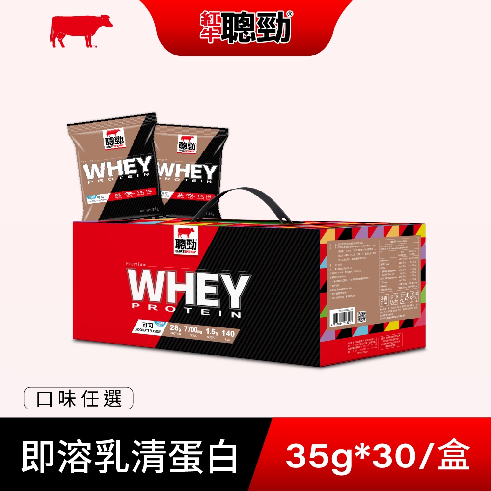 【紅牛官方直營】聰勁即溶乳清蛋白隨手包-任選風味(35gX30包)高蛋白 蛋白粉 乳清蛋白原味|可可|曼特寧|乳酸|芋香|抹茶|珍珠奶茶|花生巧克力|烏龍奶茶|濃情巧克力|蜂蜜牛奶FitnessRED COW 紅牛奶粉官方網站