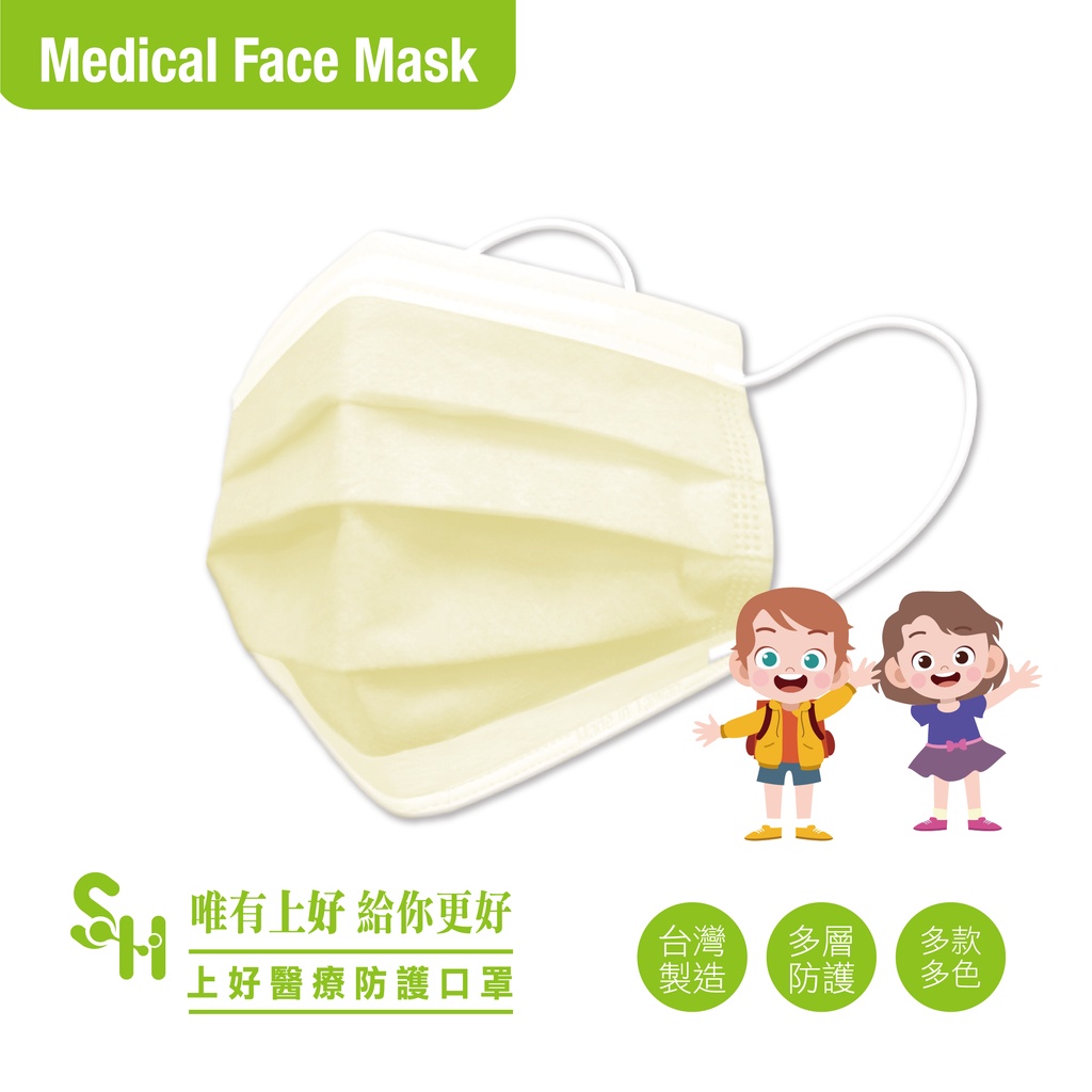 【上好生醫】兒童|香檳黃|50入裝 醫療防護口罩兒童款Medical Gloves & MasksSH 上好生醫