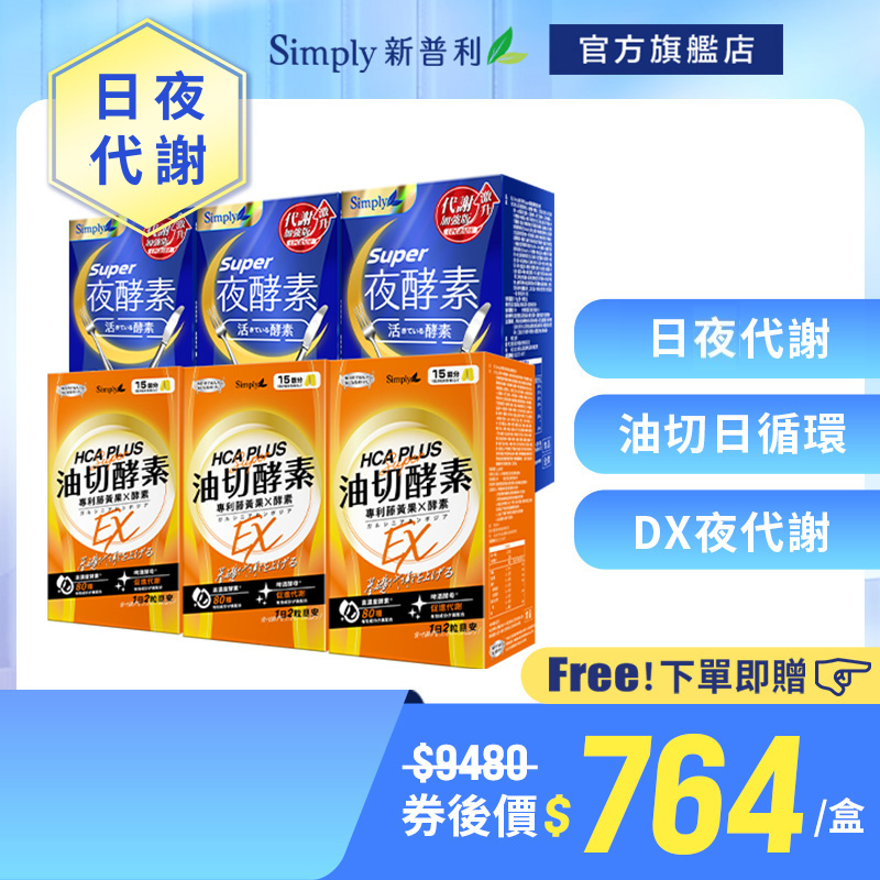 【Simply新普利】超級夜酵素DX 30顆+油切酵素錠EX30顆 (3+3組) 加贈排酵素 (獨家專利 藤黃果)DX3盒+油切3盒 加贈排酵素Weight ManagementSimply新普利酵素官方旗艦店