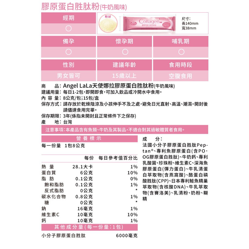 Angel LaLa天使娜拉膠原蛋白粉4盒(15包/盒)加贈3條,本組共63條 SNQ認證版官方授權通路原廠出貨SNQ版 4盒加贈3條Beauty SupplementsSNQ健康優購網