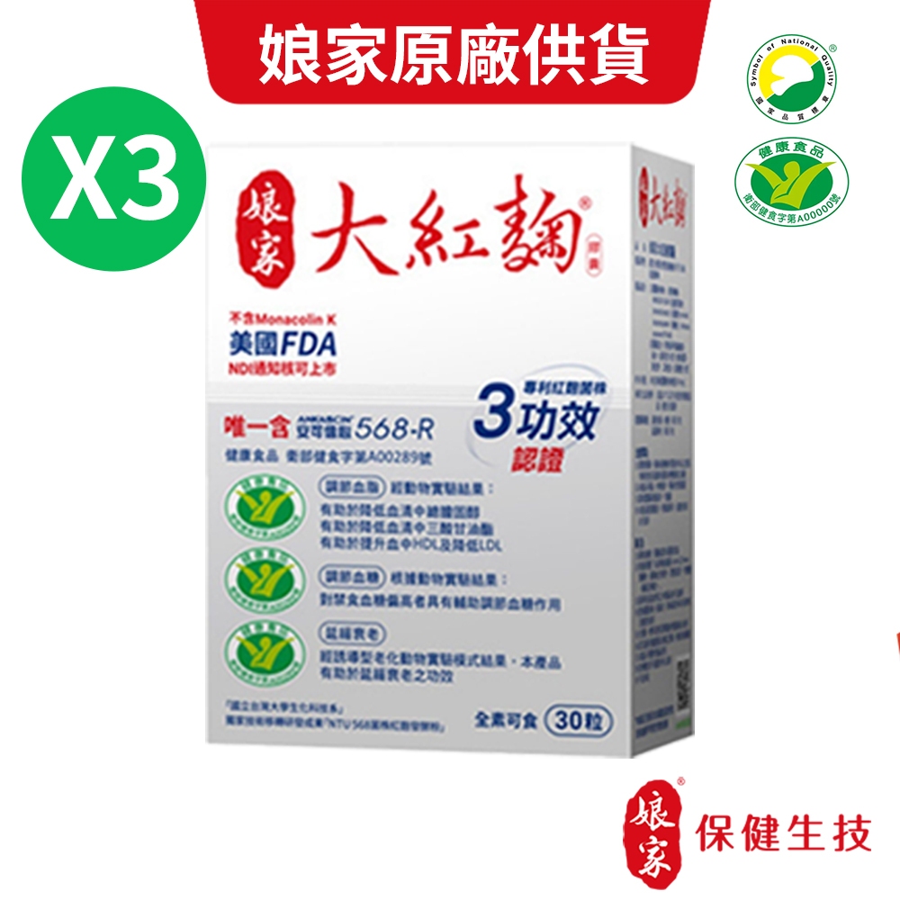 娘家大紅麴調節血脂調節血糖延緩衰老3盒優惠組(30粒/盒)娘家原廠供貨;限時活動送2款贈品黑蒜精+麵條 SNQ健康優購網特惠3盒組-下單選送贈品黑蒜精+麵條Well BeingSNQ健康優購網