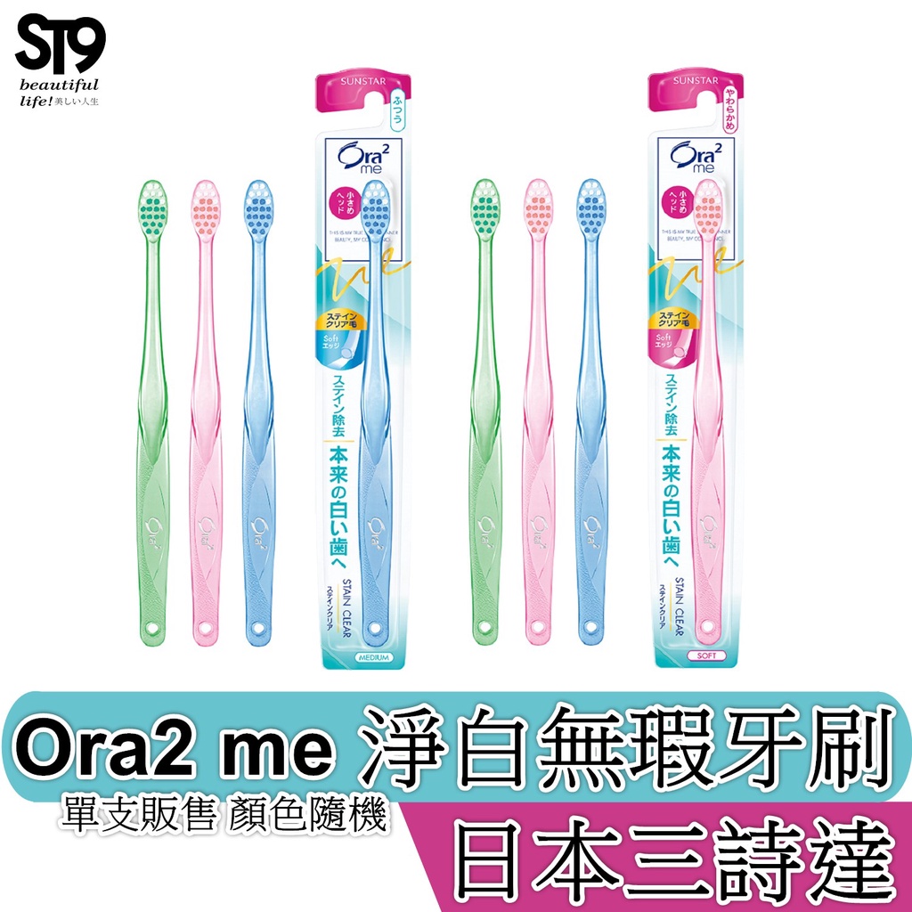 Ora2 me 淨白無瑕牙刷 中性毛 軟性毛 1入 顏色隨機出貨 有效清除齒漬 愛樂齒 三詩達 SUNSTAR中性毛1入|軟性毛1入Oral CareST9PLUS 品牌 零售 批發 團購