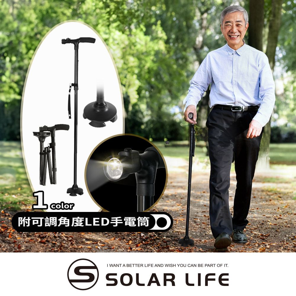 鋁合金折疊式站立手杖附LED燈 鋁合金 四腳杖 折疊手杖 伸縮杖 折疊手杖 手電筒 老人 長輩鋁合金折疊式站立手杖附LED燈 鋁合金 四腳杖 折疊手杖 伸縮杖 折疊手杖 手電筒 老人 長輩Injury & Disability SupportSolar Life 索樂生活 | Keith鎧斯鈦台灣總代理