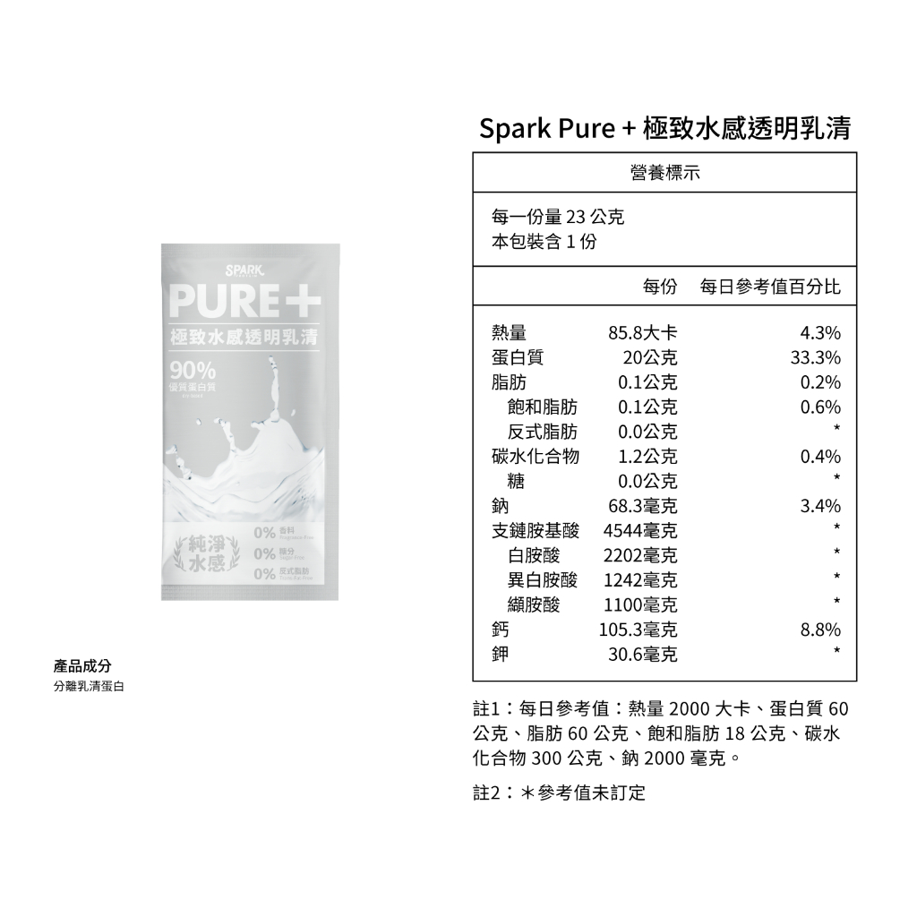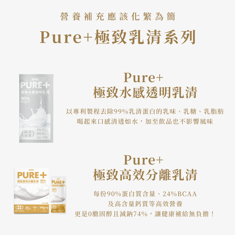 Spark Pure+ 極致分離乳清(隨手單包裝)|分離乳清 純乳清 無調味乳清 零添加Pure+ 極致高效分離乳清|Pure+ 極致水感透明乳清FitnessSpark Protein