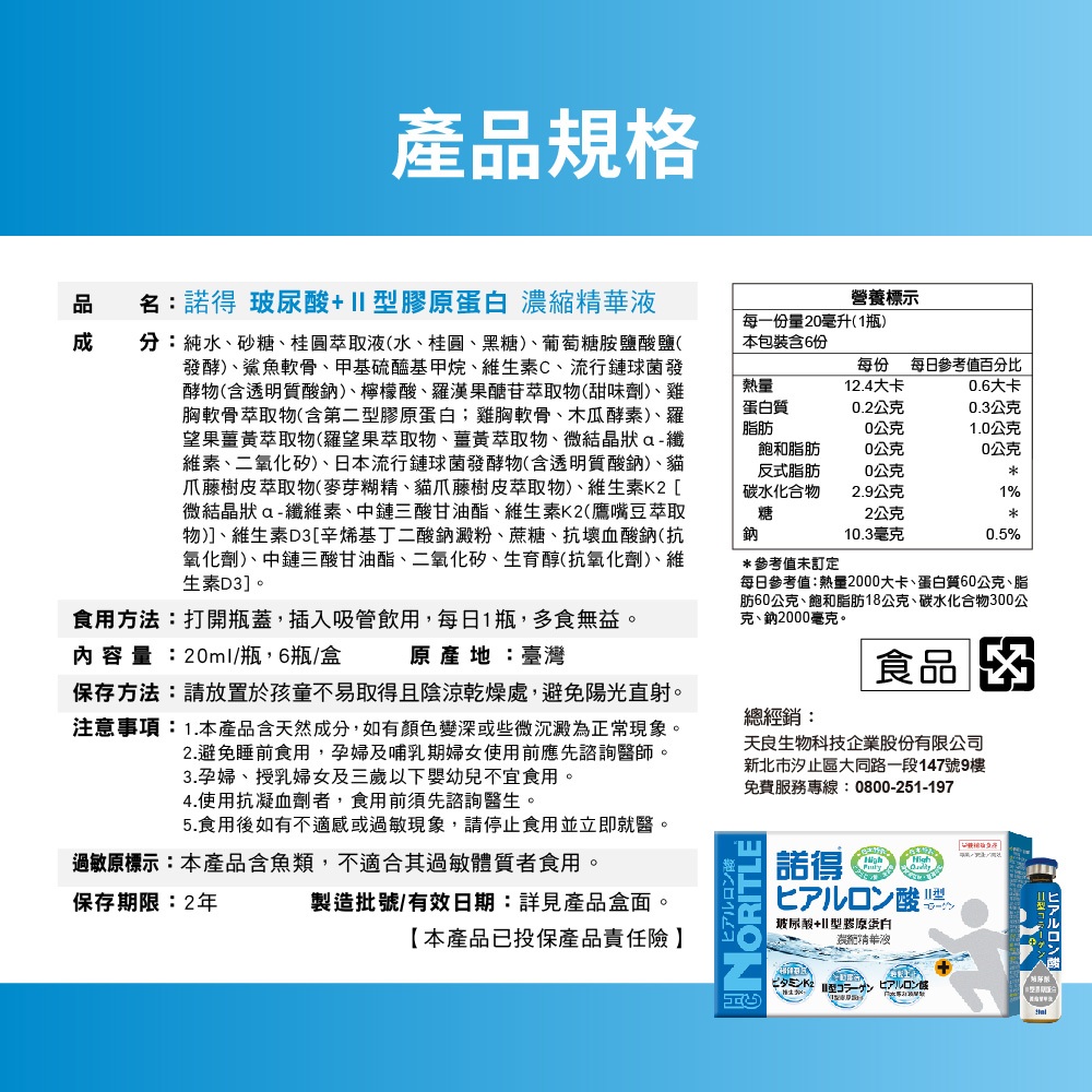 【NORITLE諾得】玻尿酸+Ⅱ型膠原蛋白濃縮精華液(20ml/瓶x6瓶入)-6盒【NORITLE諾得】玻尿酸+Ⅱ型膠原蛋白濃縮精華液(20ml/瓶x6瓶入)-6盒Beauty SupplementsNORITLE 諾得官方旗艦店