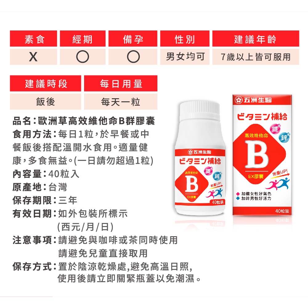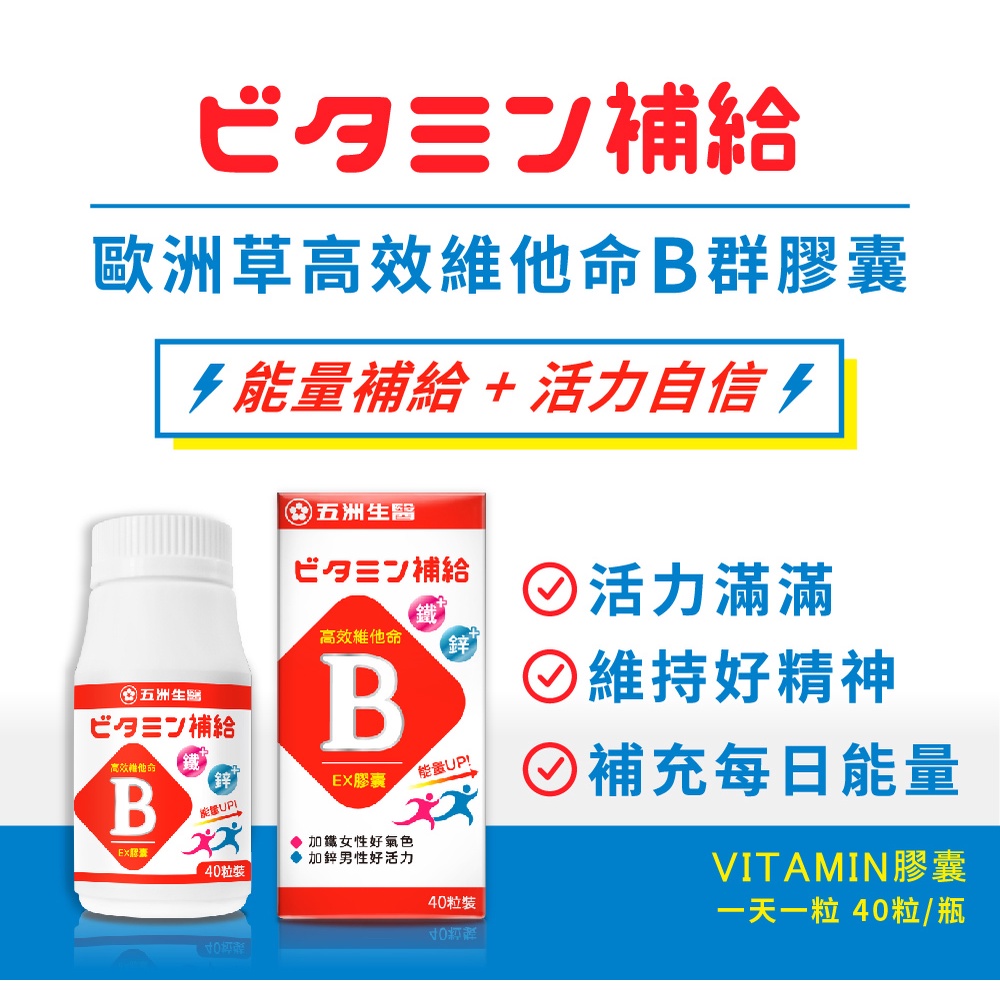 【五洲生醫】歐洲草高效維他命B群膠囊 | 40粒 / 瓶 1瓶、3瓶 機能性食品1瓶|3瓶Well BeingPinky官方旗艦館/五洲生醫