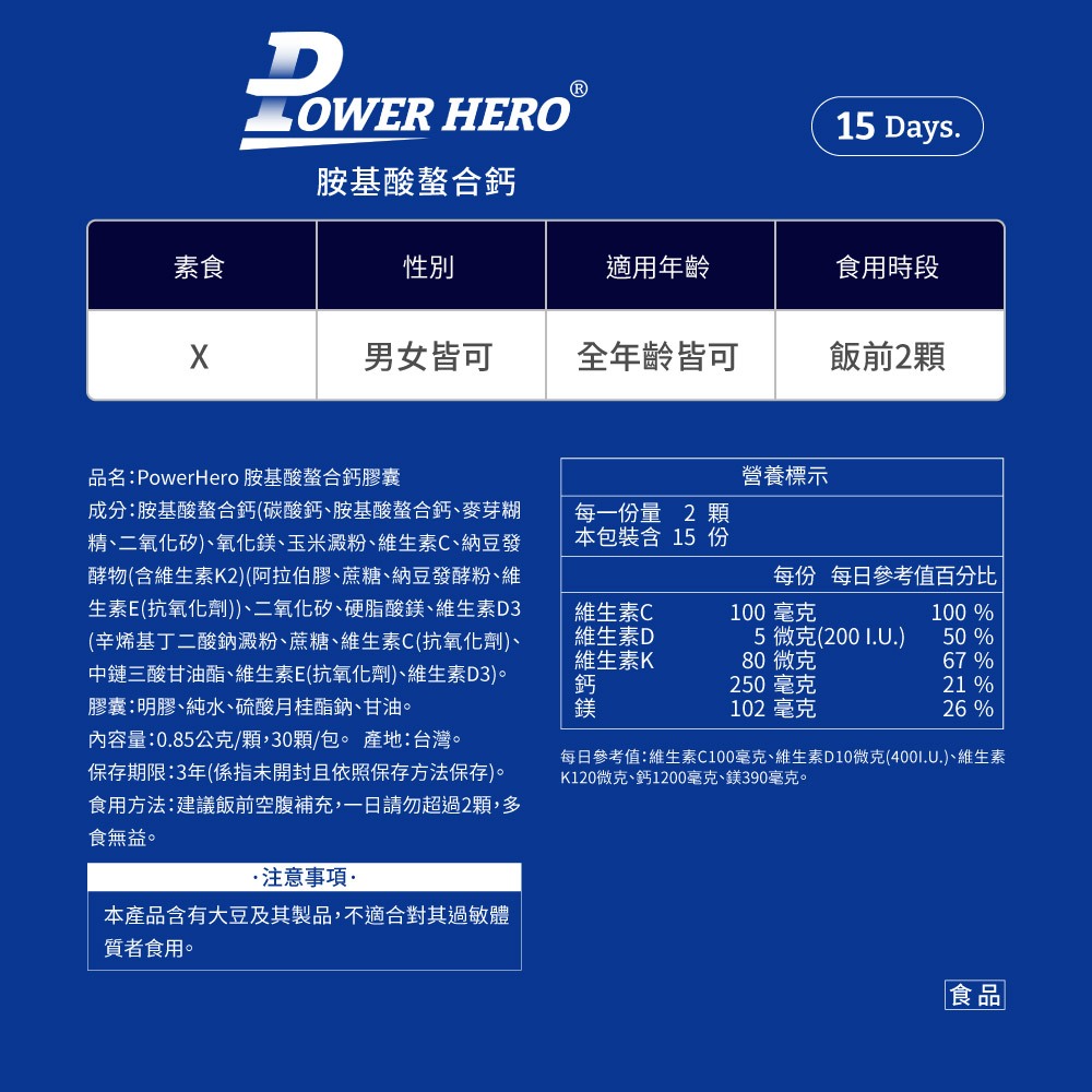【PowerHero】胺基酸螯合鈣 1/2/4包 (30顆/包)《全能完備、硬骨王者》1包|2包|4包Well BeingPowerHero 官方旗艦館