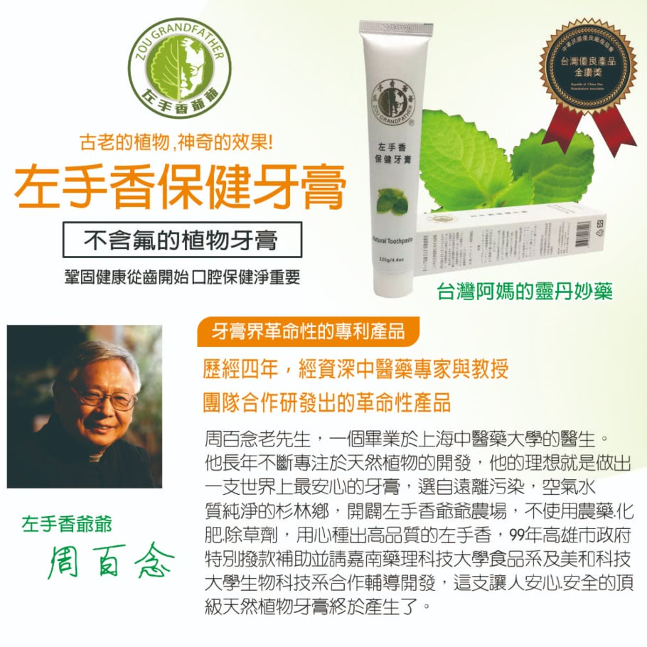 【左手香爺爺】左手香牙膏120g【官方新到貨】現貨最新效期 牙齒救星 用過就回不去了 不含氟的牙膏左手香經典牙膏 快速出貨X單入|左手香經典牙膏 快速出貨 五入組Oral CareR I C H R I C H|Veggie Care|ANKOMN